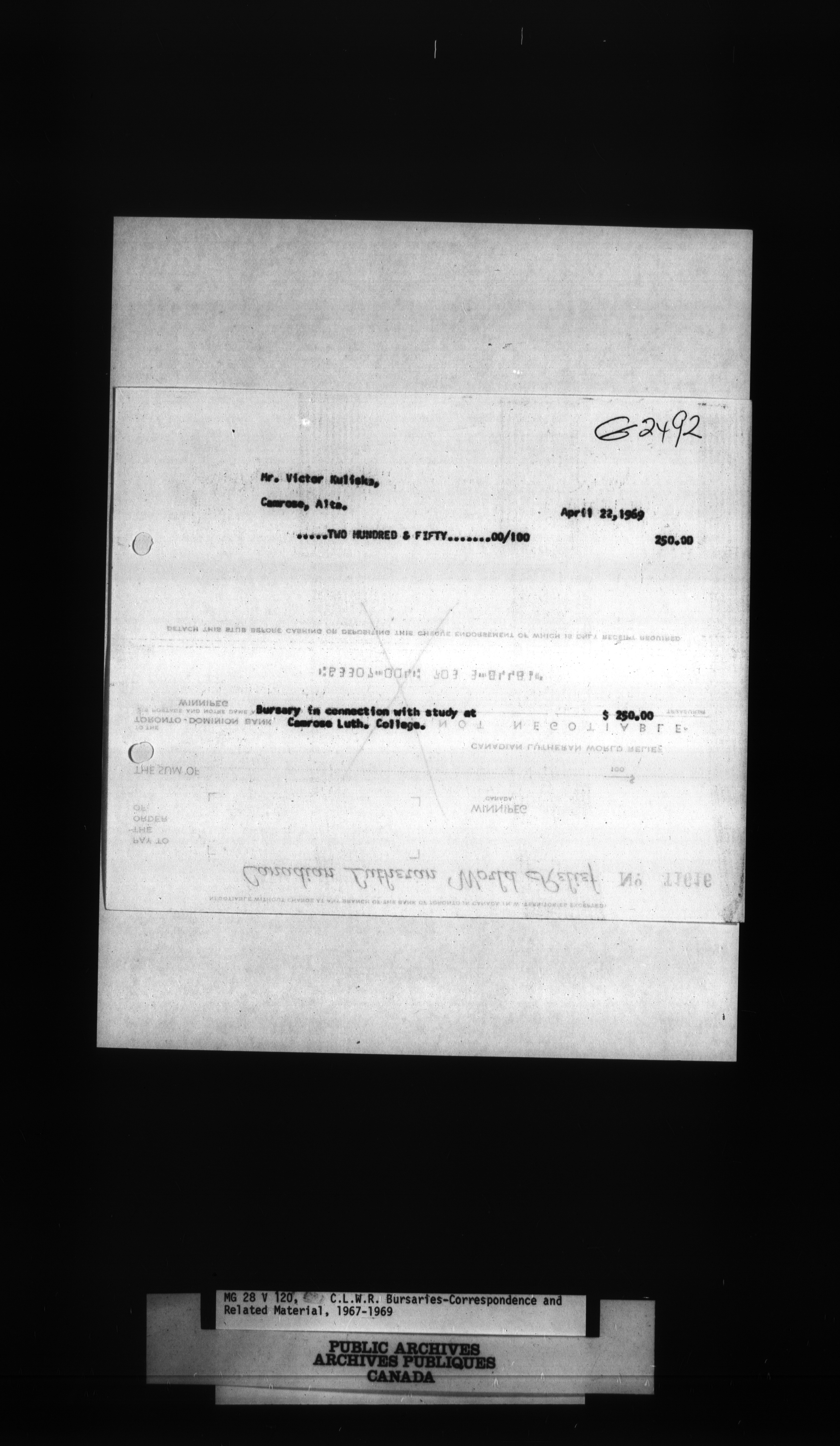Canadian Lutheran World Relief, Bursaries correspondence and related materials - 1396
