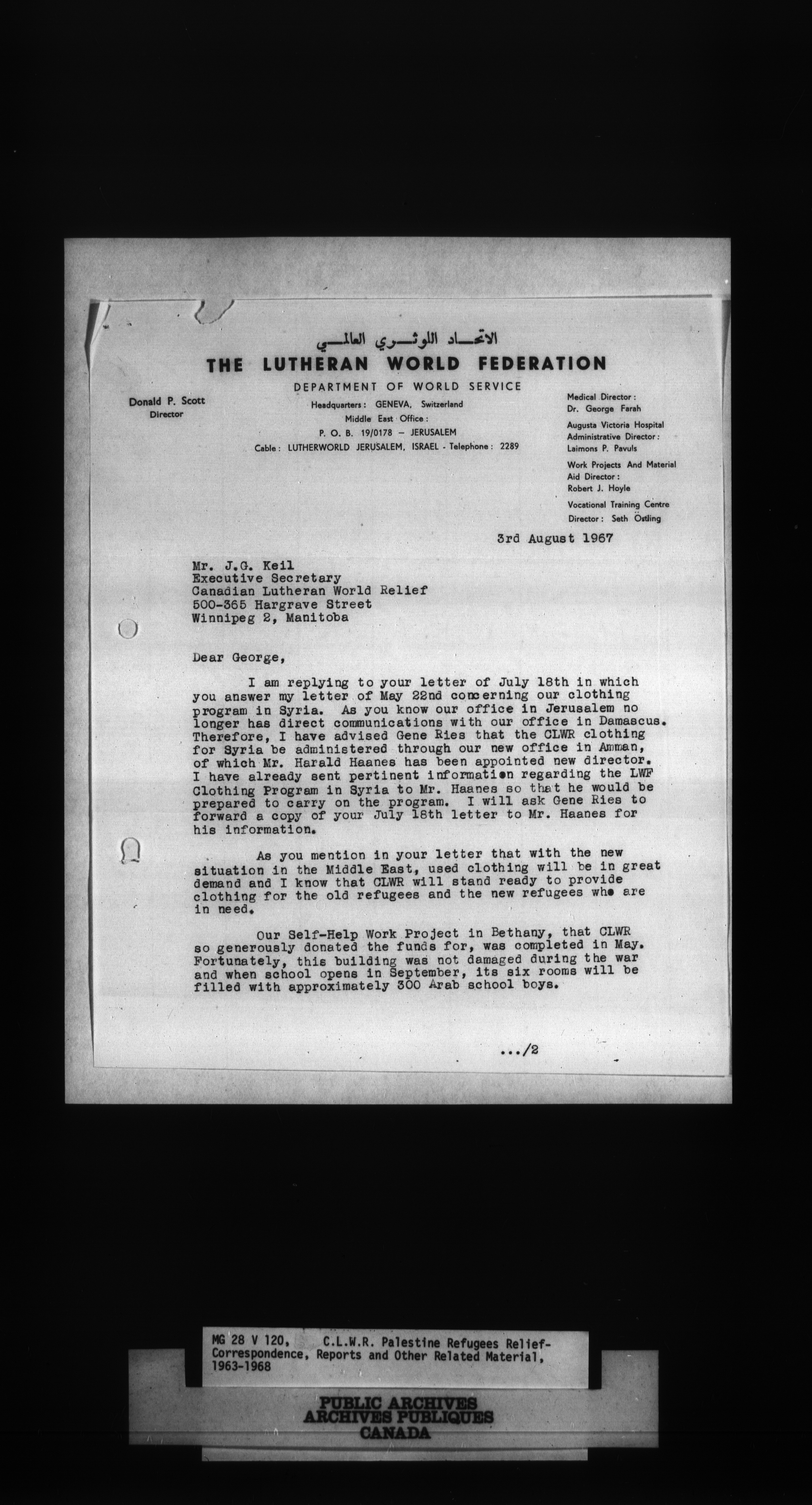 Canadian Lutheran World Relief, Palestine refugees relief, Brazil family planning project, Tanganyka Aid, Algeria Aid, Sumatra-Indonesia self help porject and Hong Kong aid - 1398