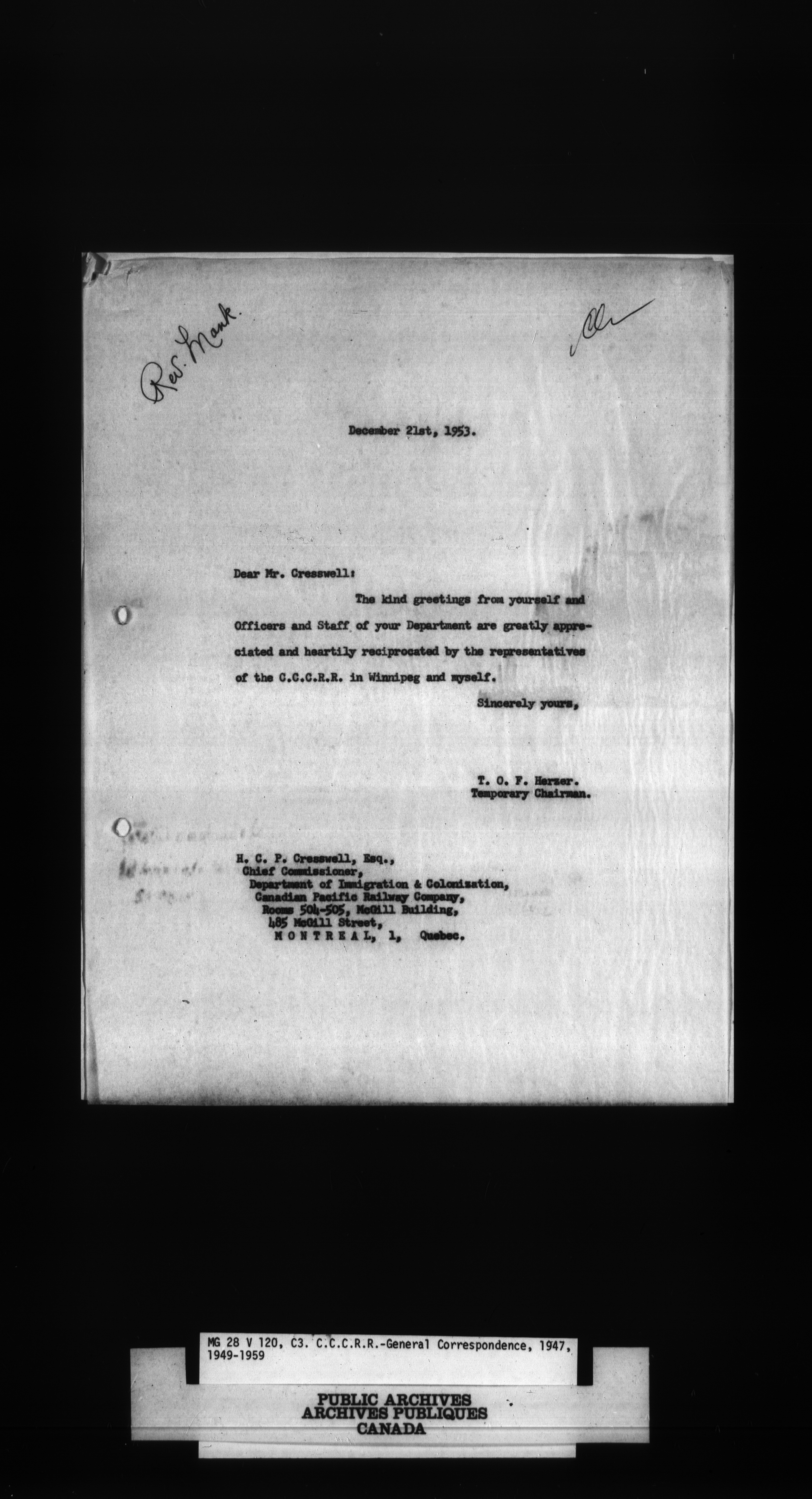 Canadian Council for Resettlement of refugees correspondence - 1399