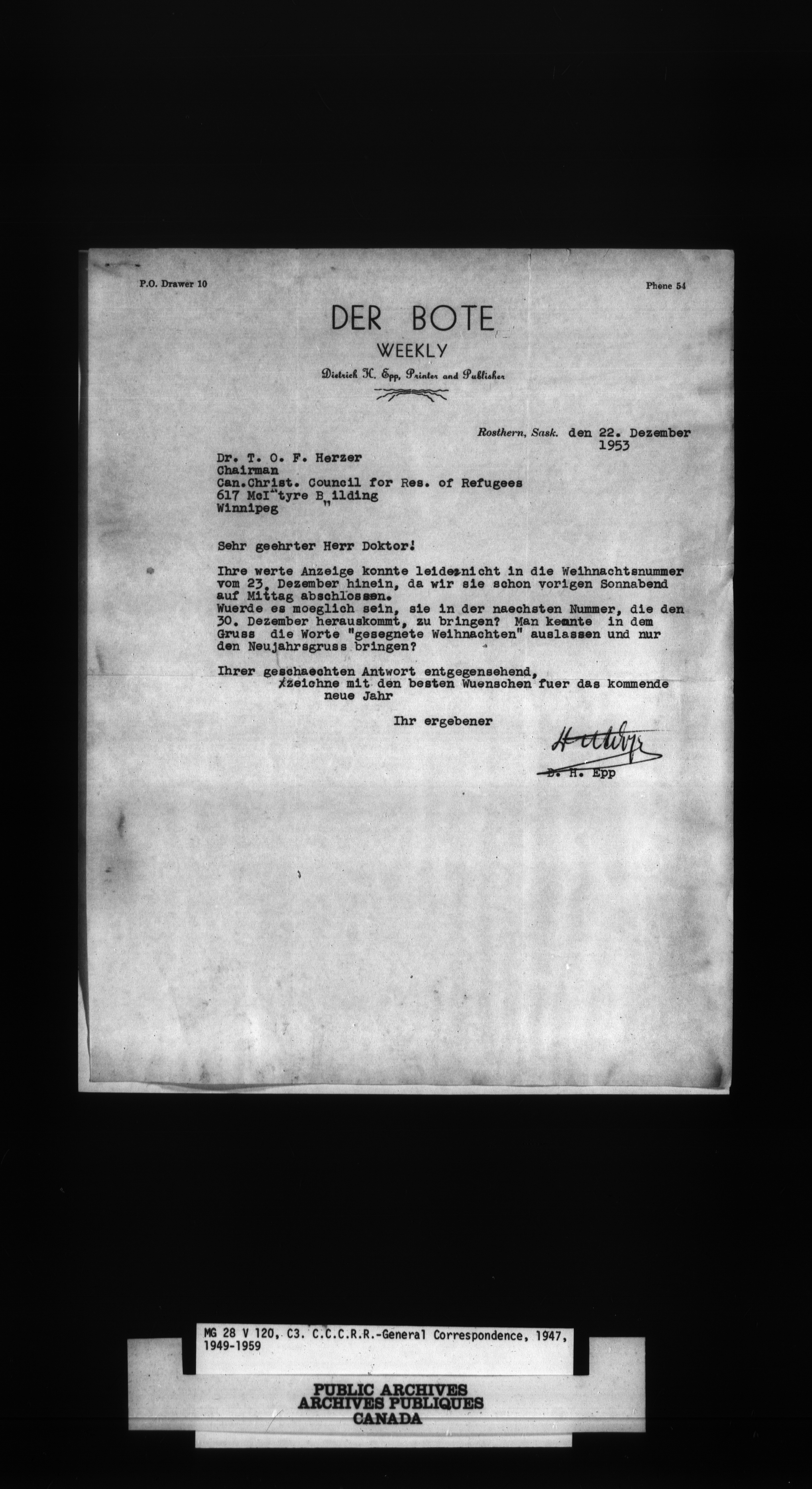Canadian Council for Resettlement of refugees correspondence - 1399