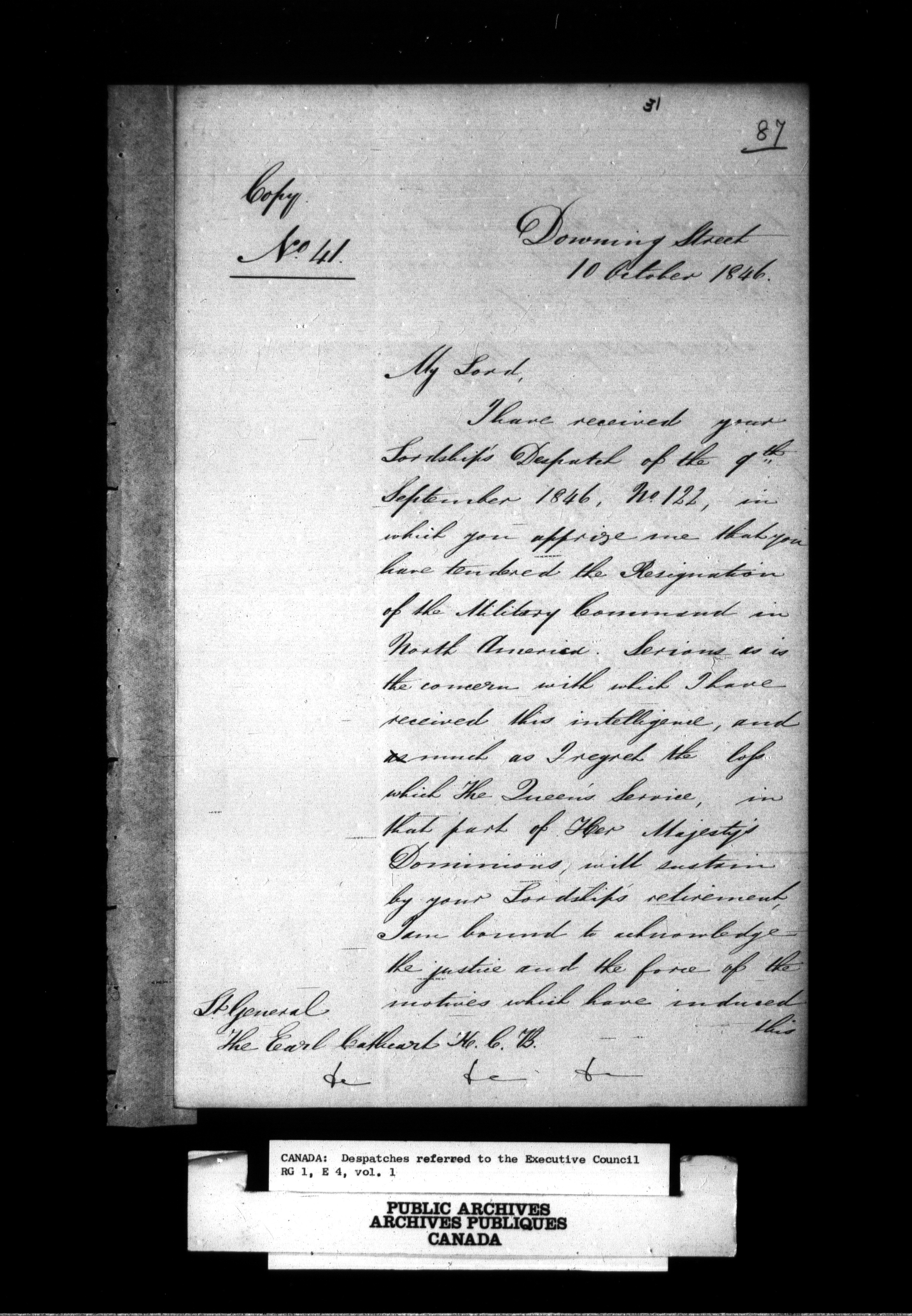 Canada: Despatches referred to the Executive Council - 1403