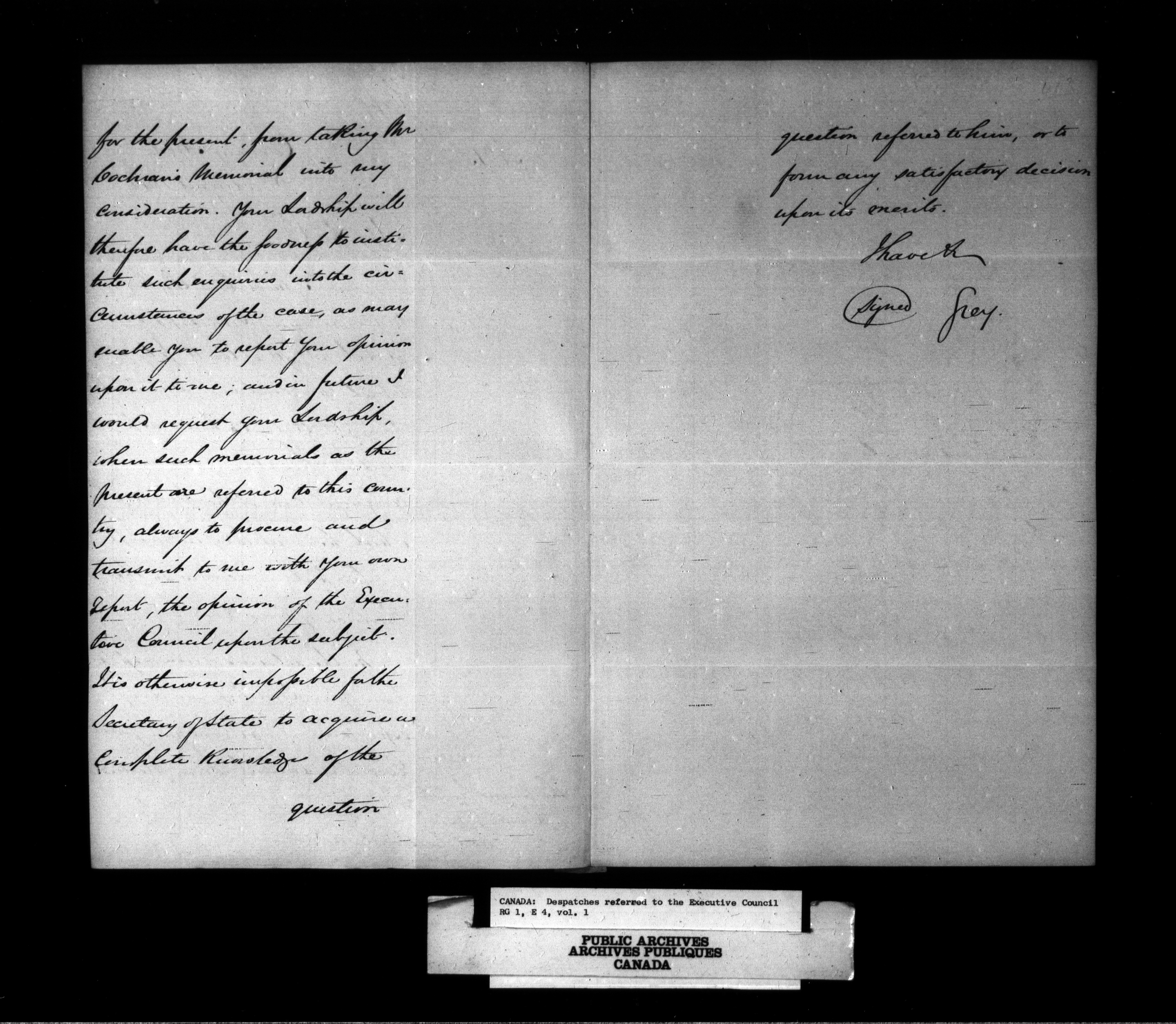 Canada: Despatches referred to the Executive Council - 1403