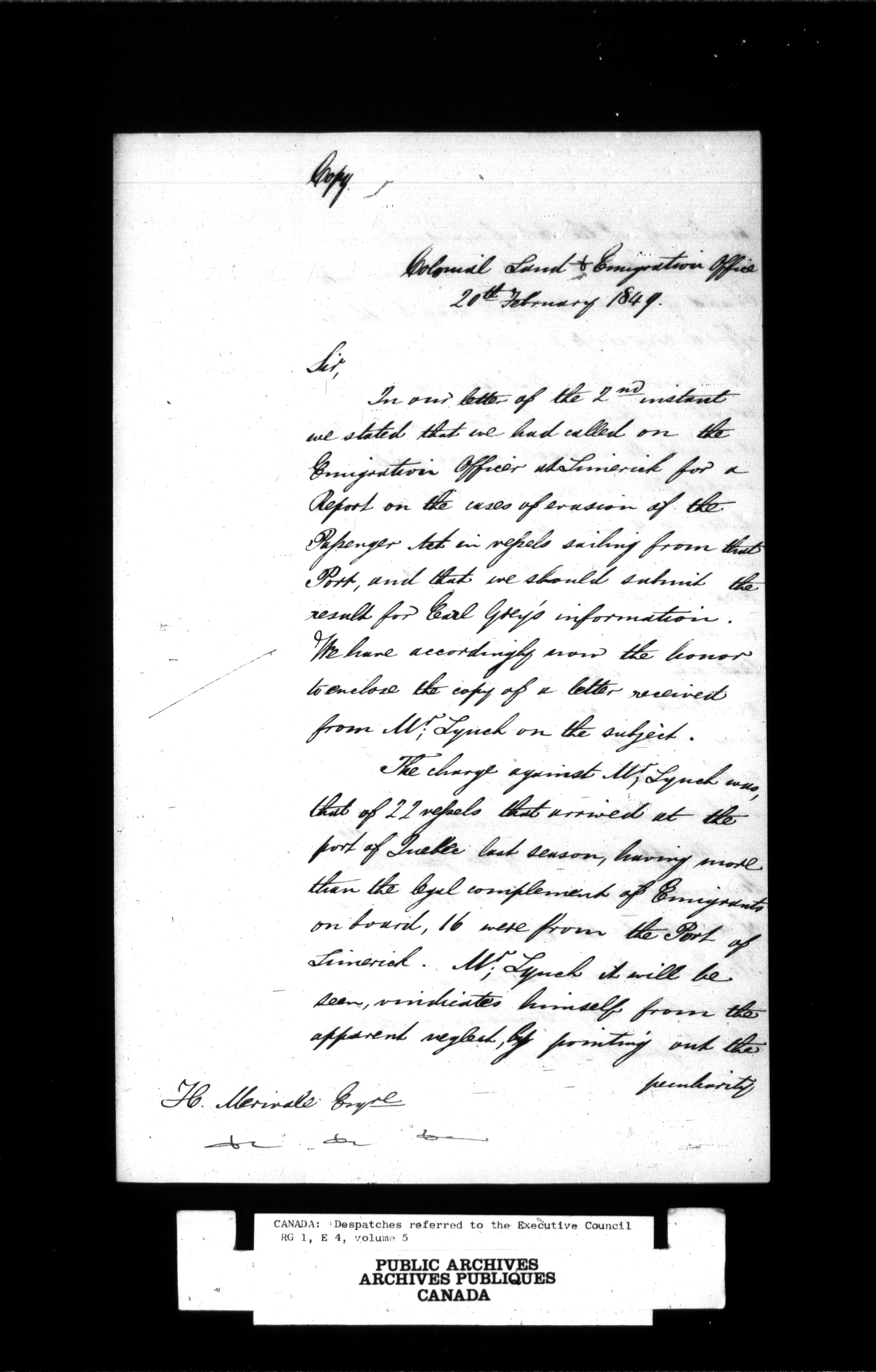Canada: Despatches referred to the Executive Council - 1403