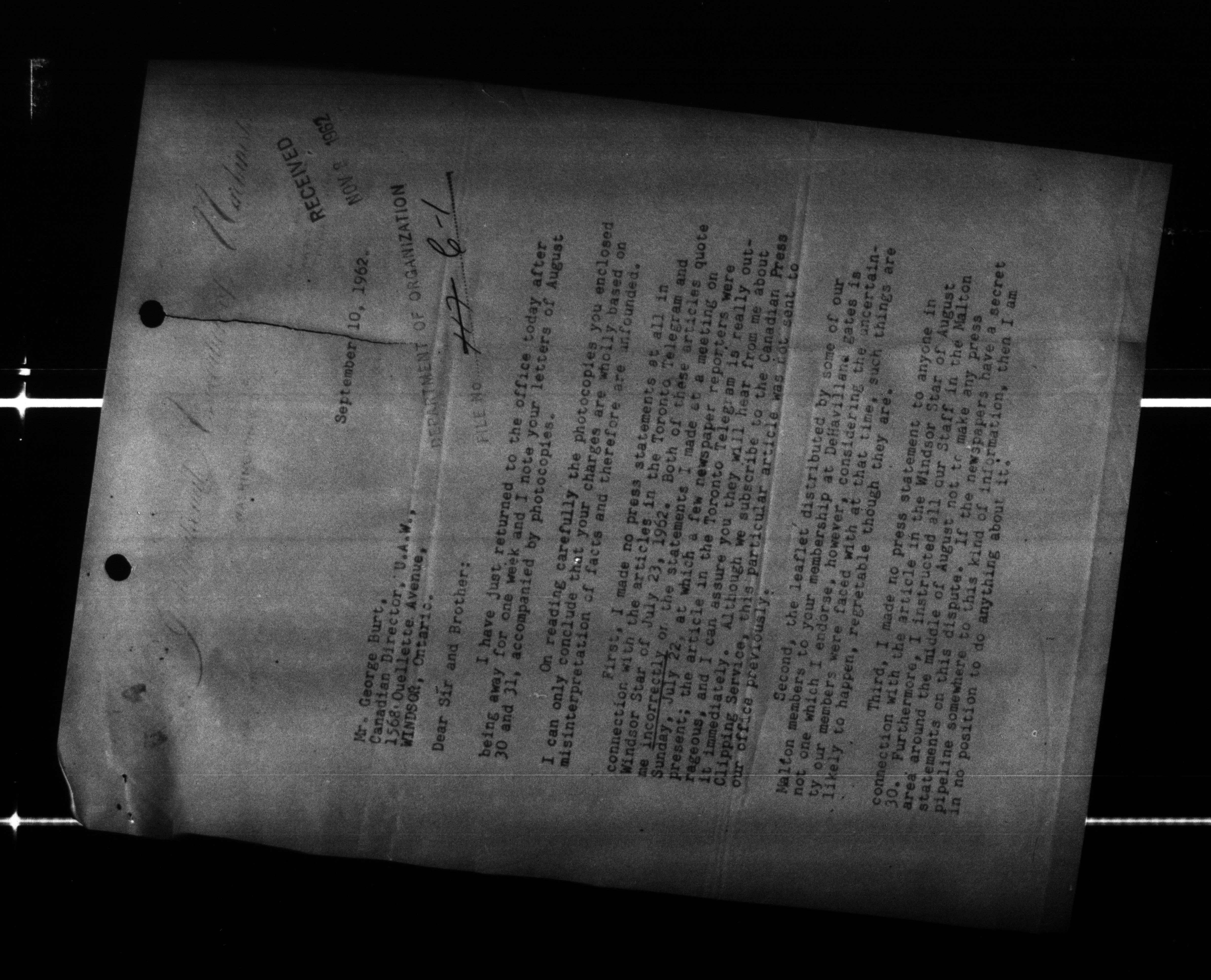 Canadian Labour Congress : Organization Department files : H-141