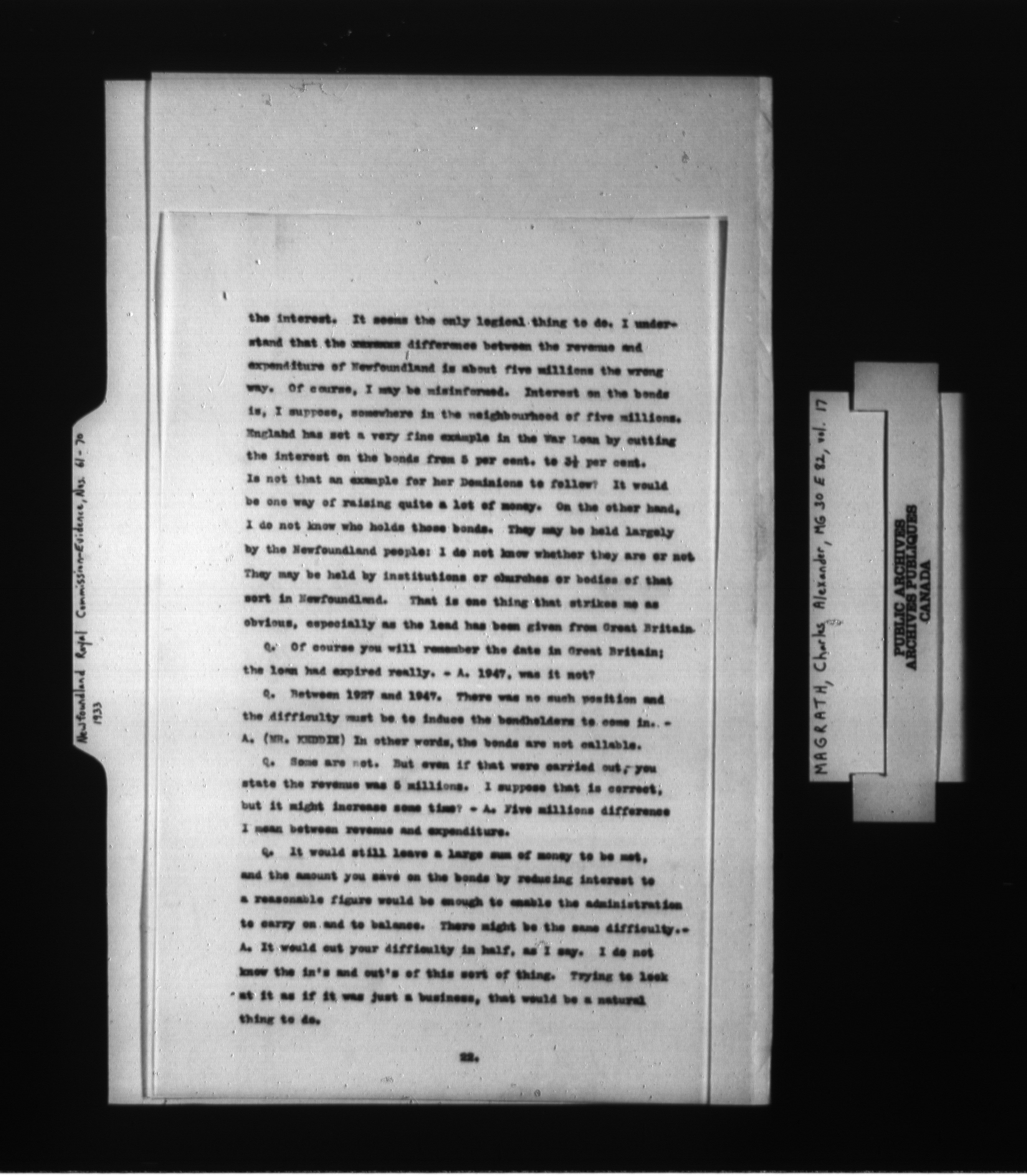 Charles Alexander Magrath : Newfoundland Royal Commission - 1420