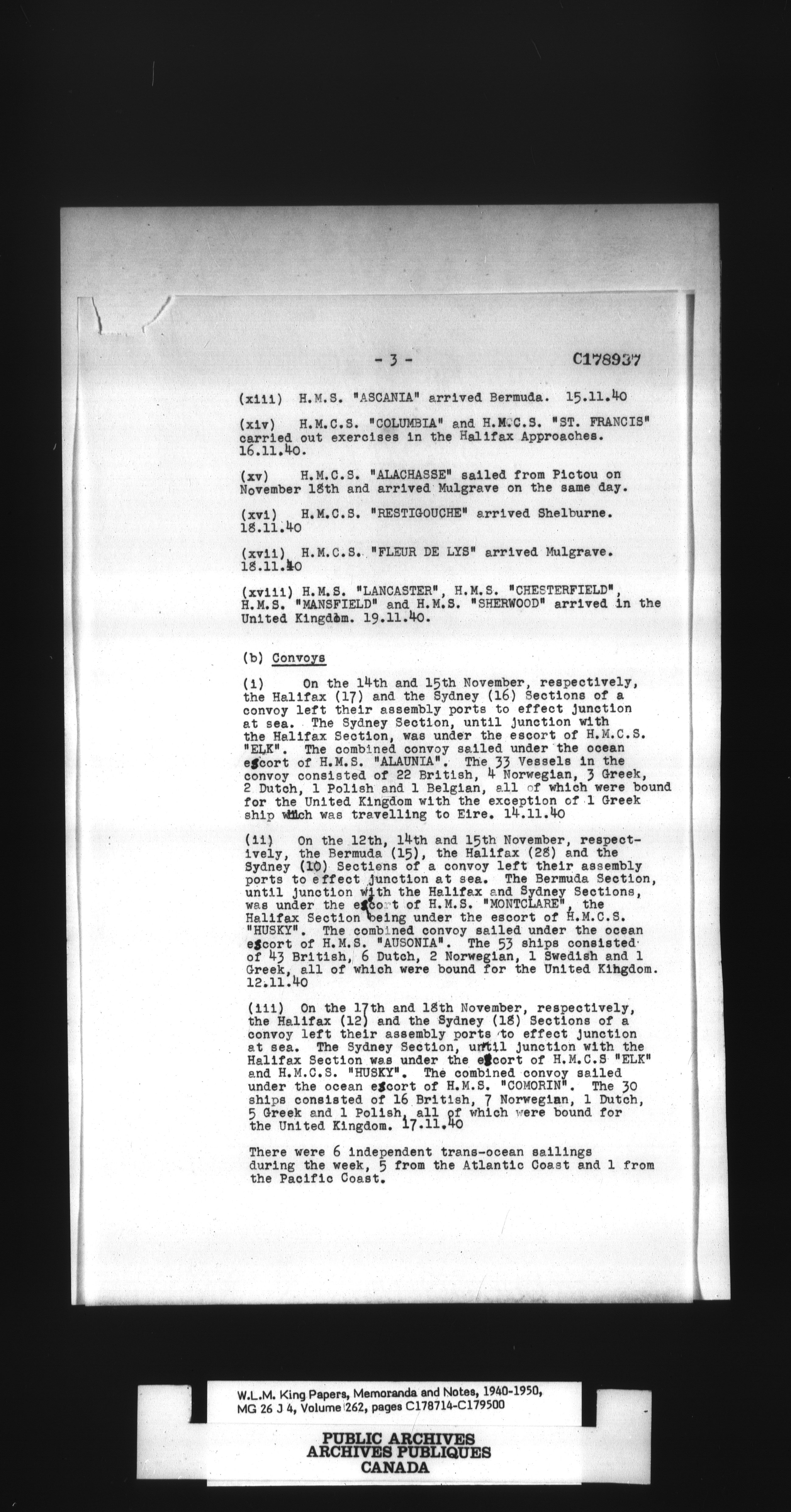 W. L. Mackenzie King : Memoranda and Notes - 1487