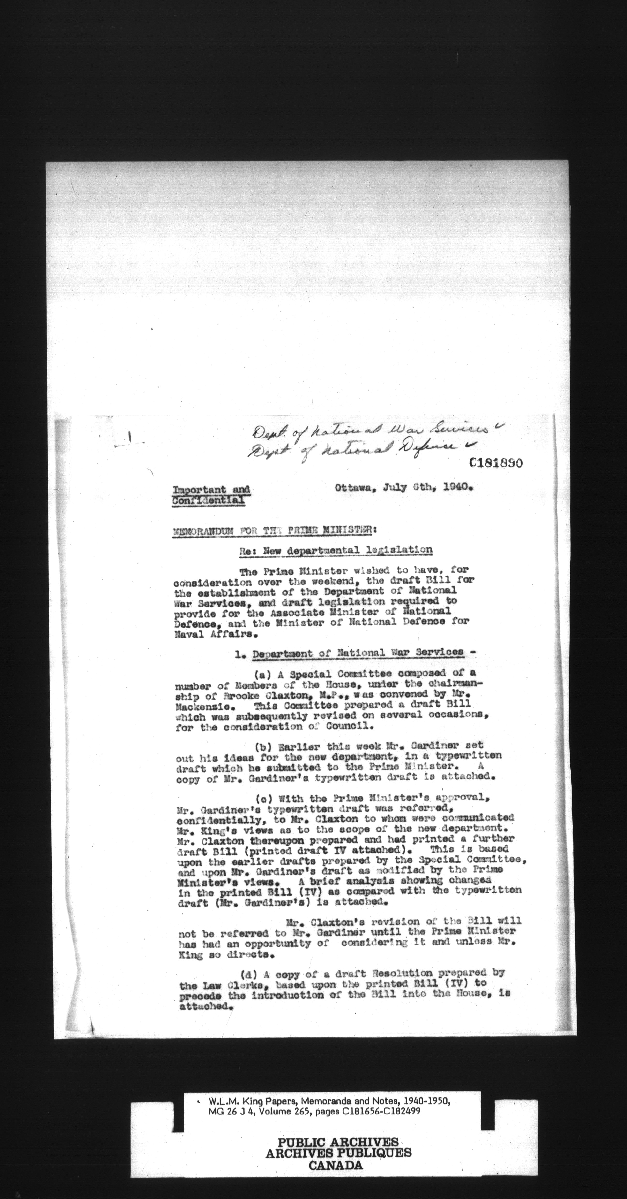 W. L. Mackenzie King : Memoranda and Notes - 1489