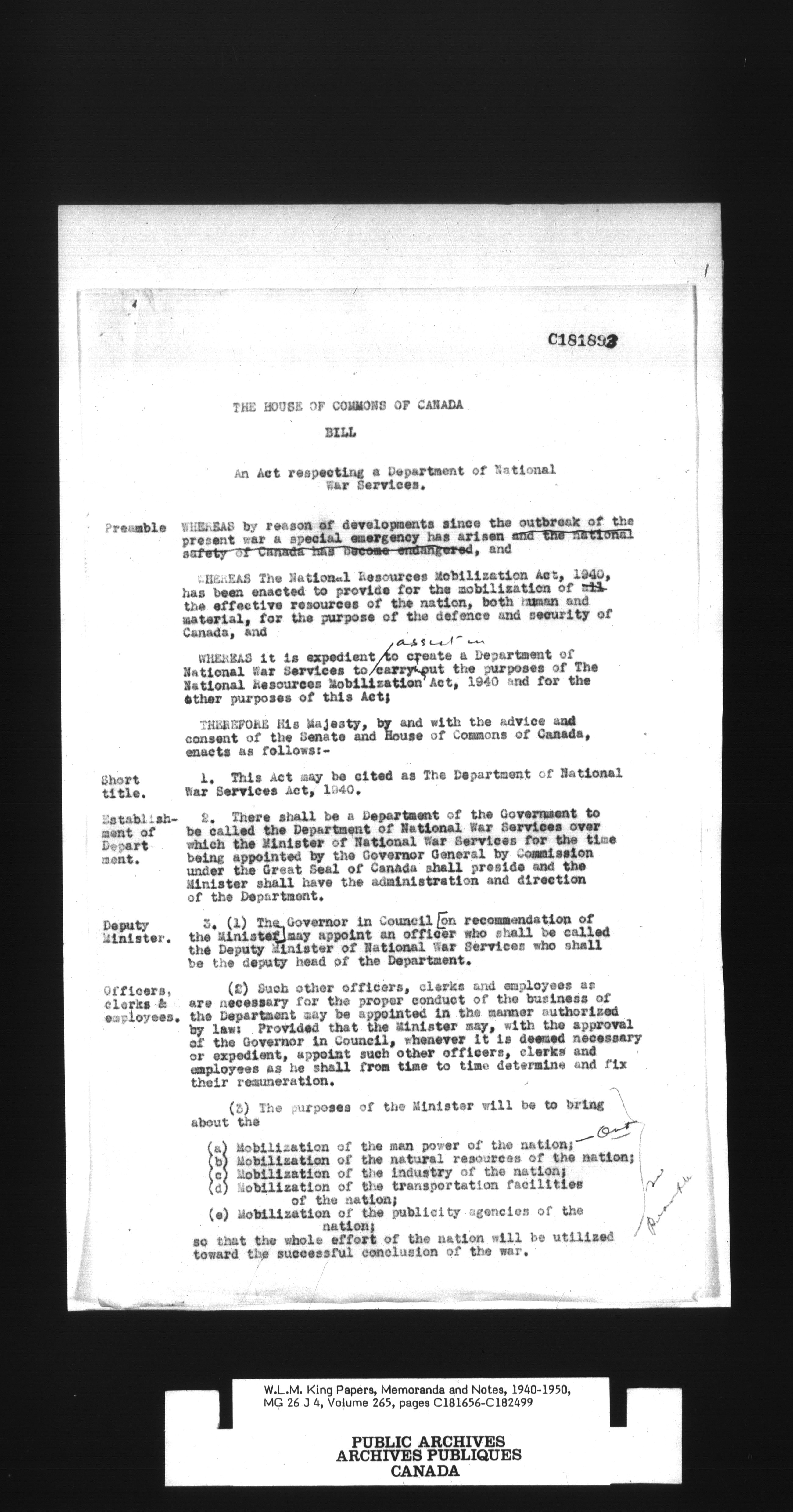 W. L. Mackenzie King : Memoranda and Notes - 1489