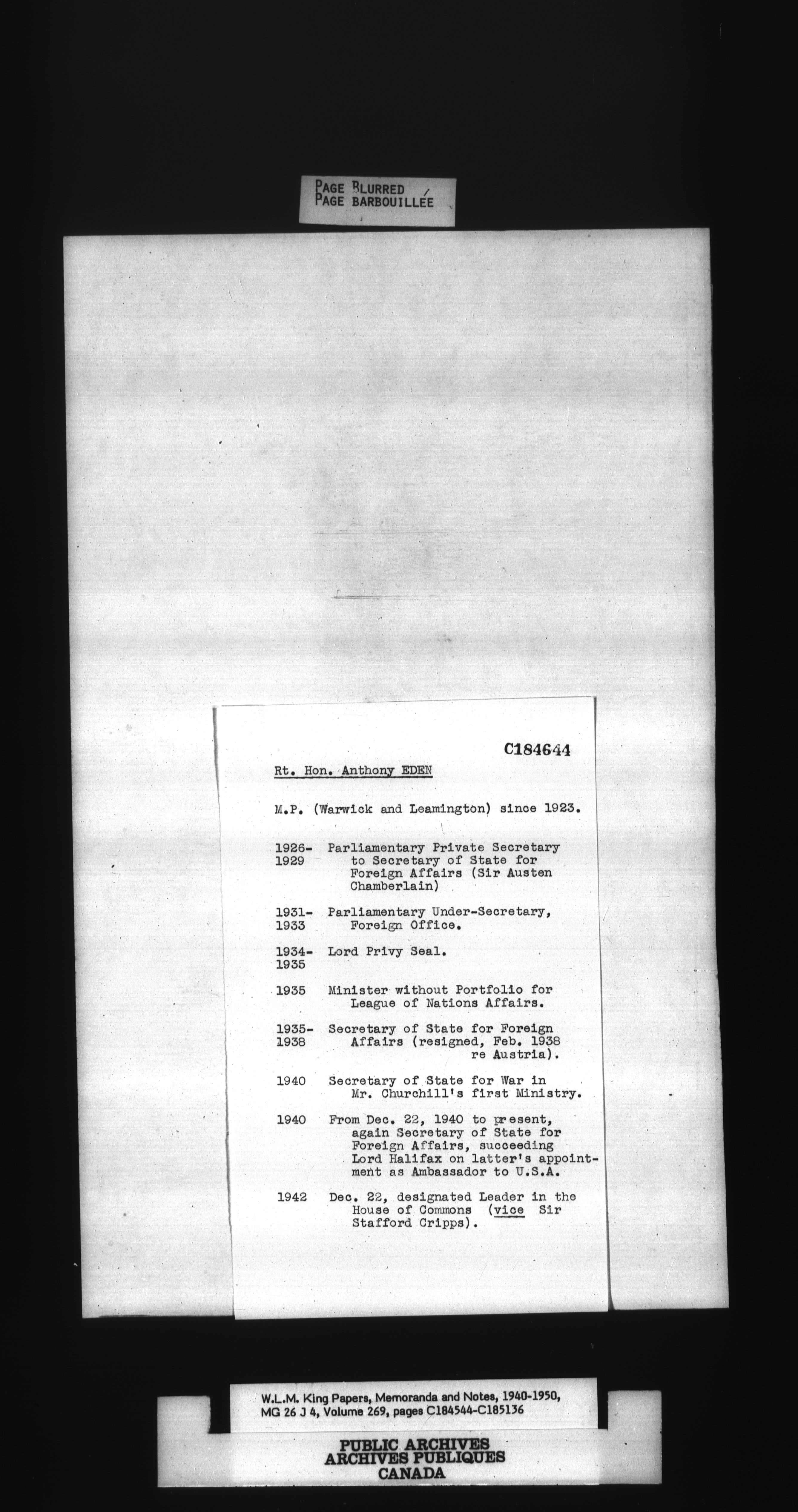 W. L. Mackenzie King : Memoranda and Notes - 1491