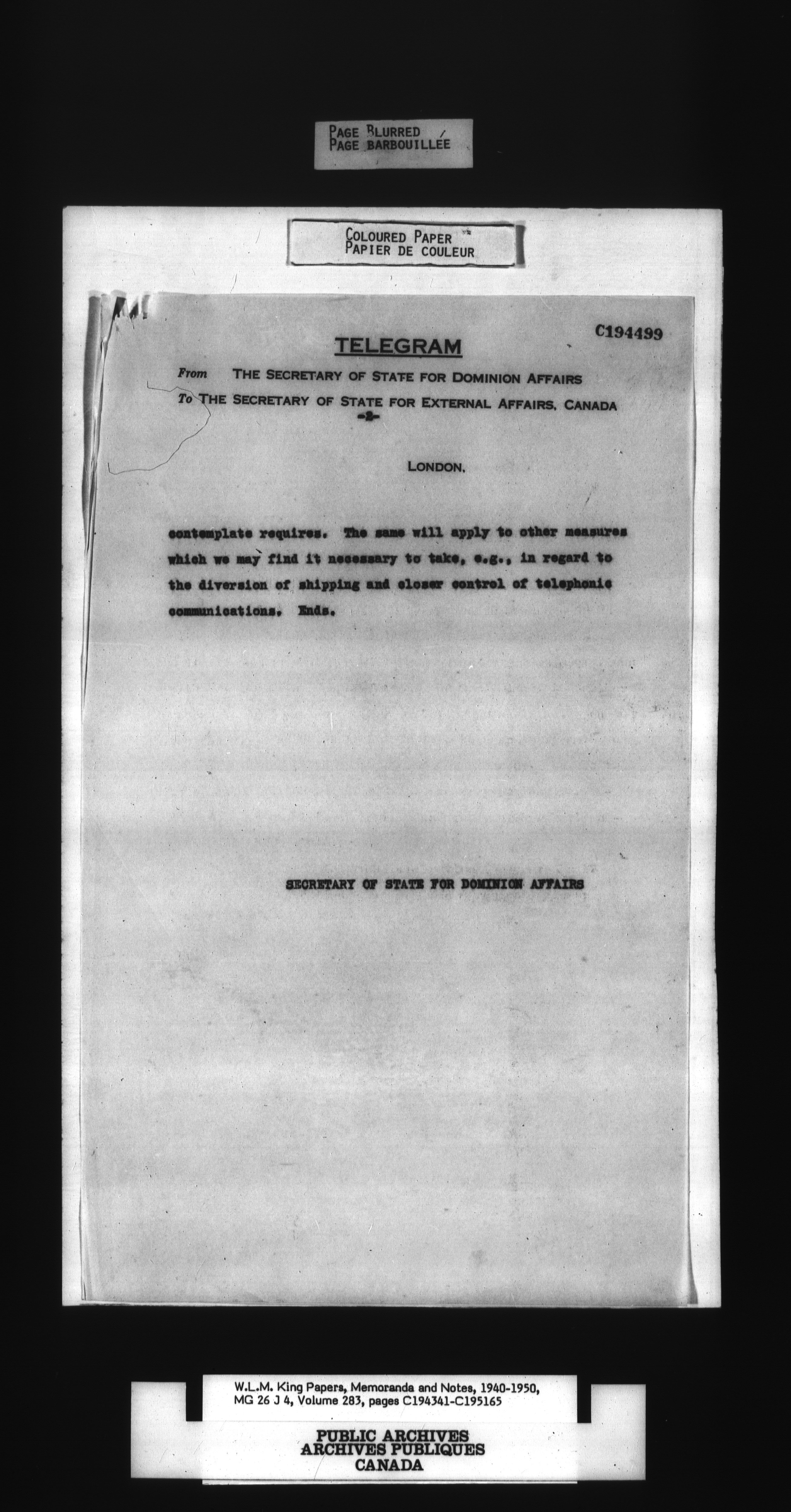 W. L. Mackenzie King : Memoranda and Notes - 1498