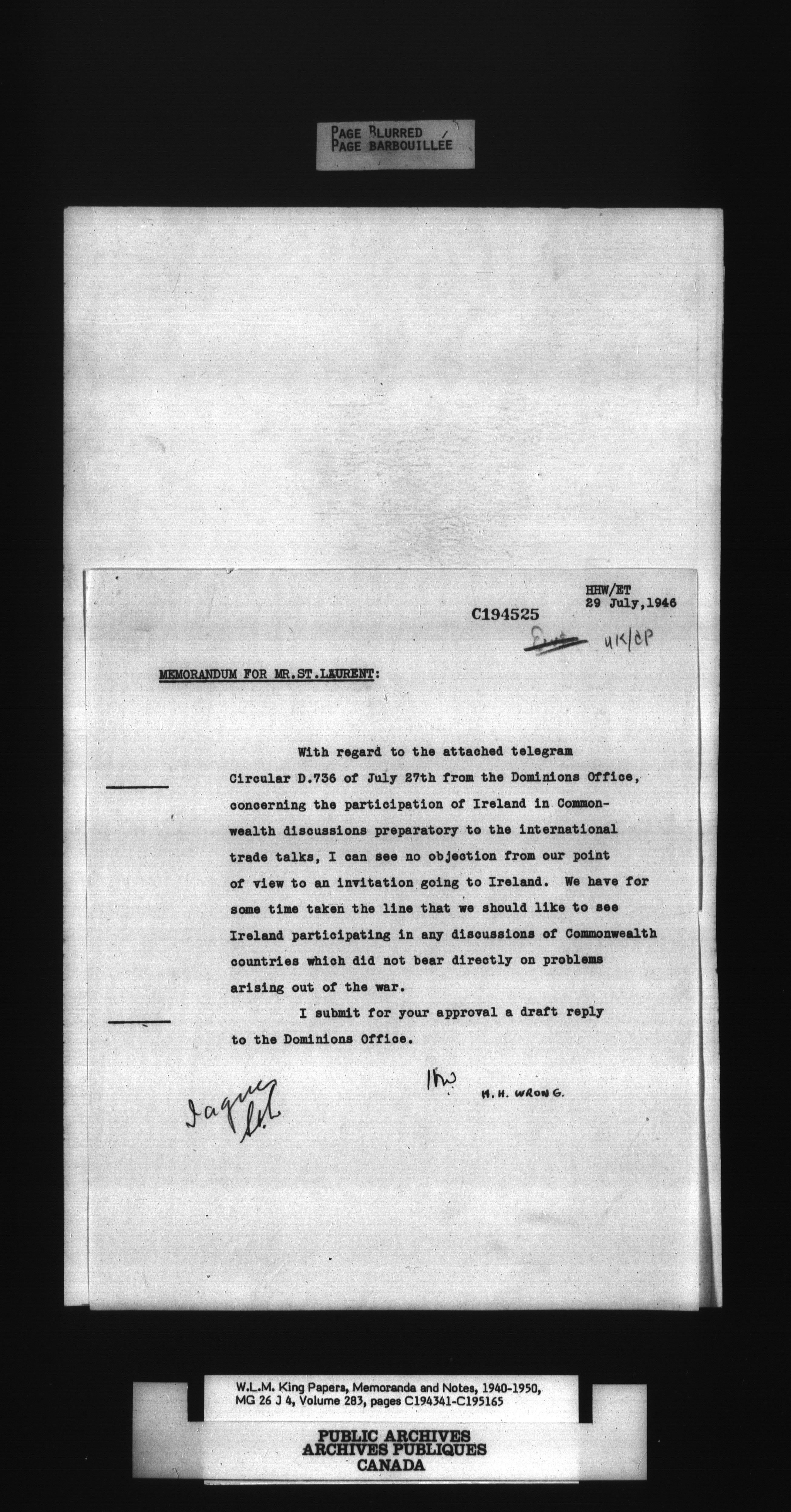 W. L. Mackenzie King : Memoranda and Notes - 1498