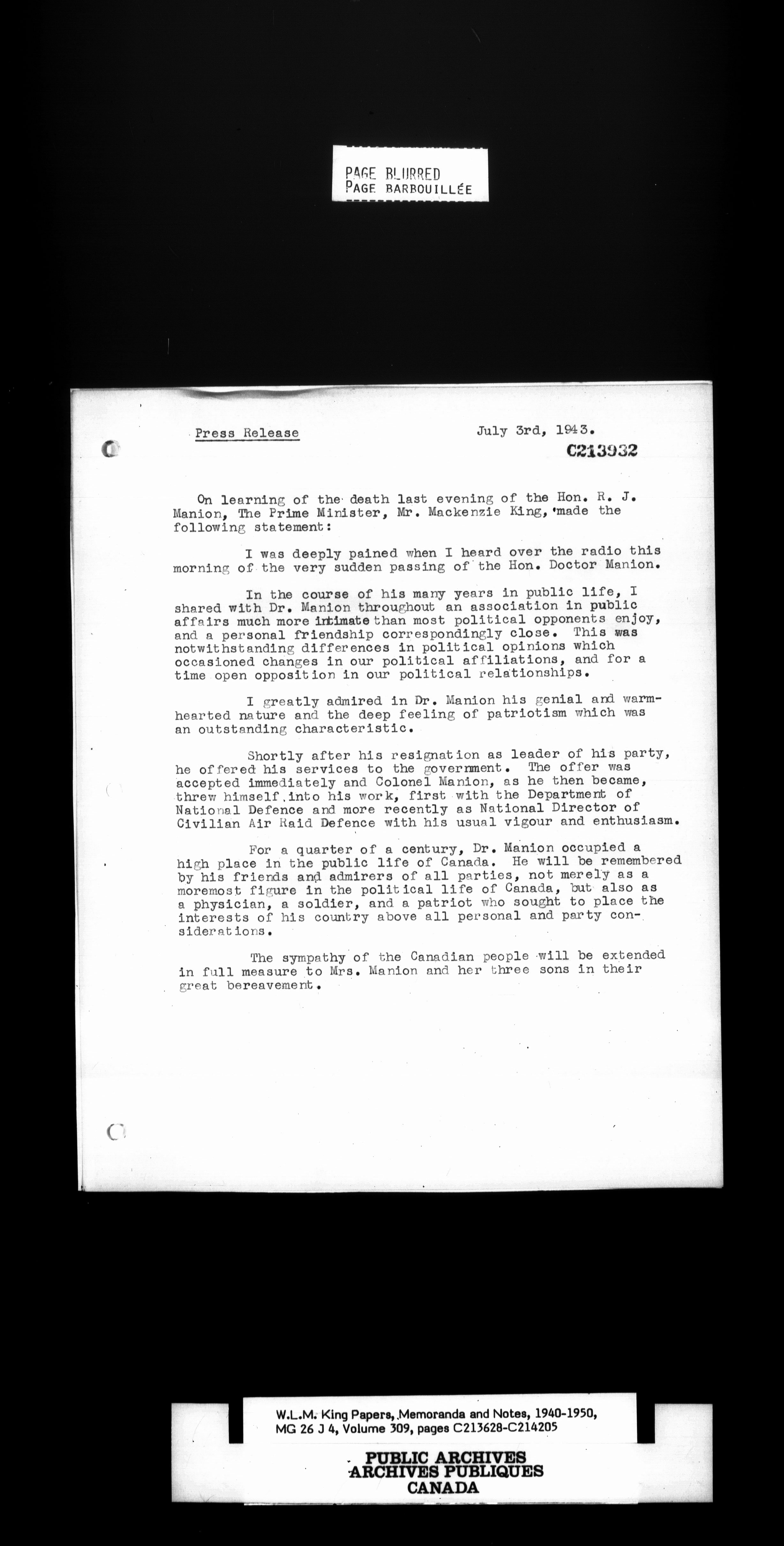 W. L. Mackenzie King : Memoranda and Notes - 1512