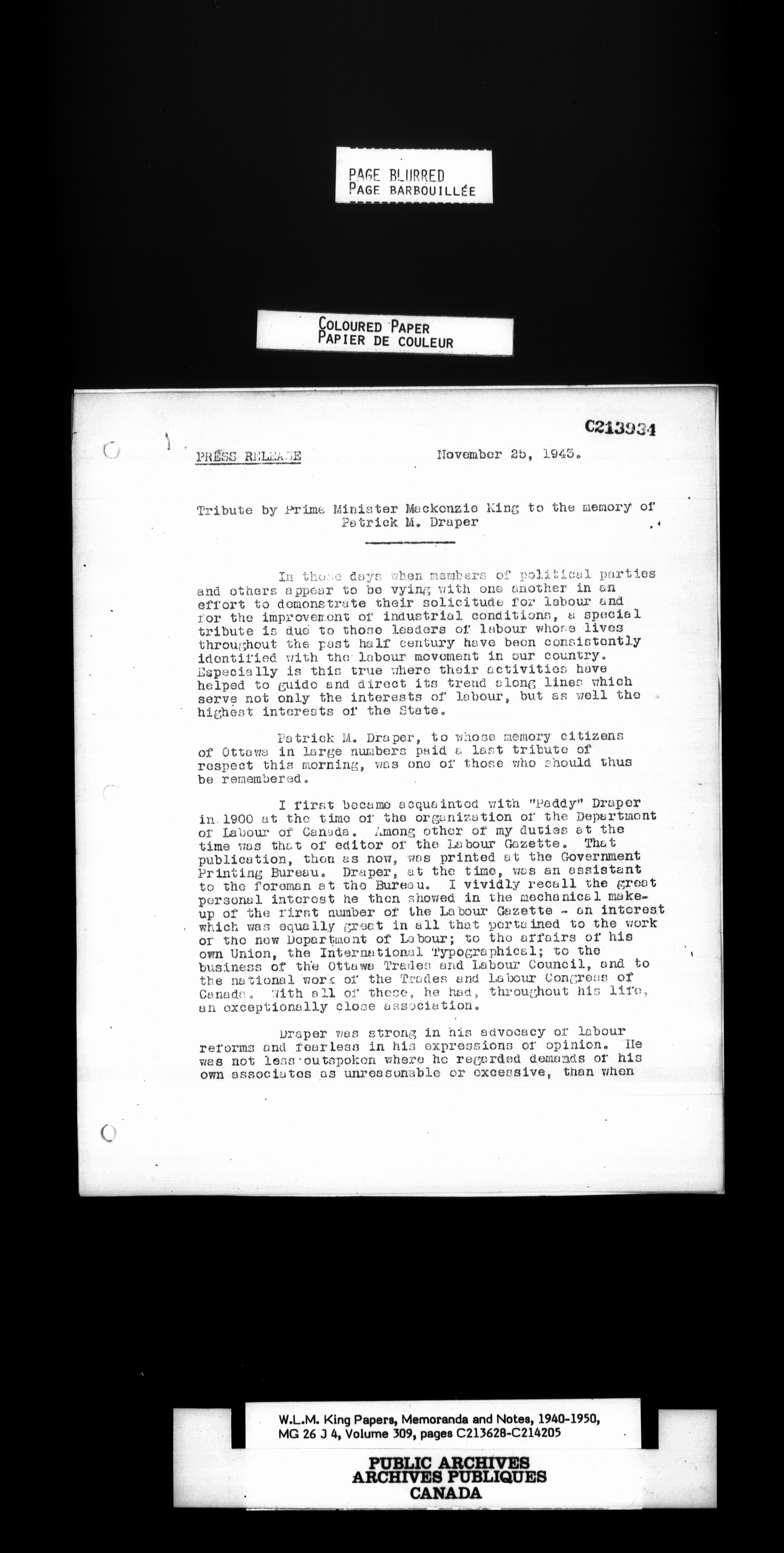 W. L. Mackenzie King : Memoranda and Notes - 1512