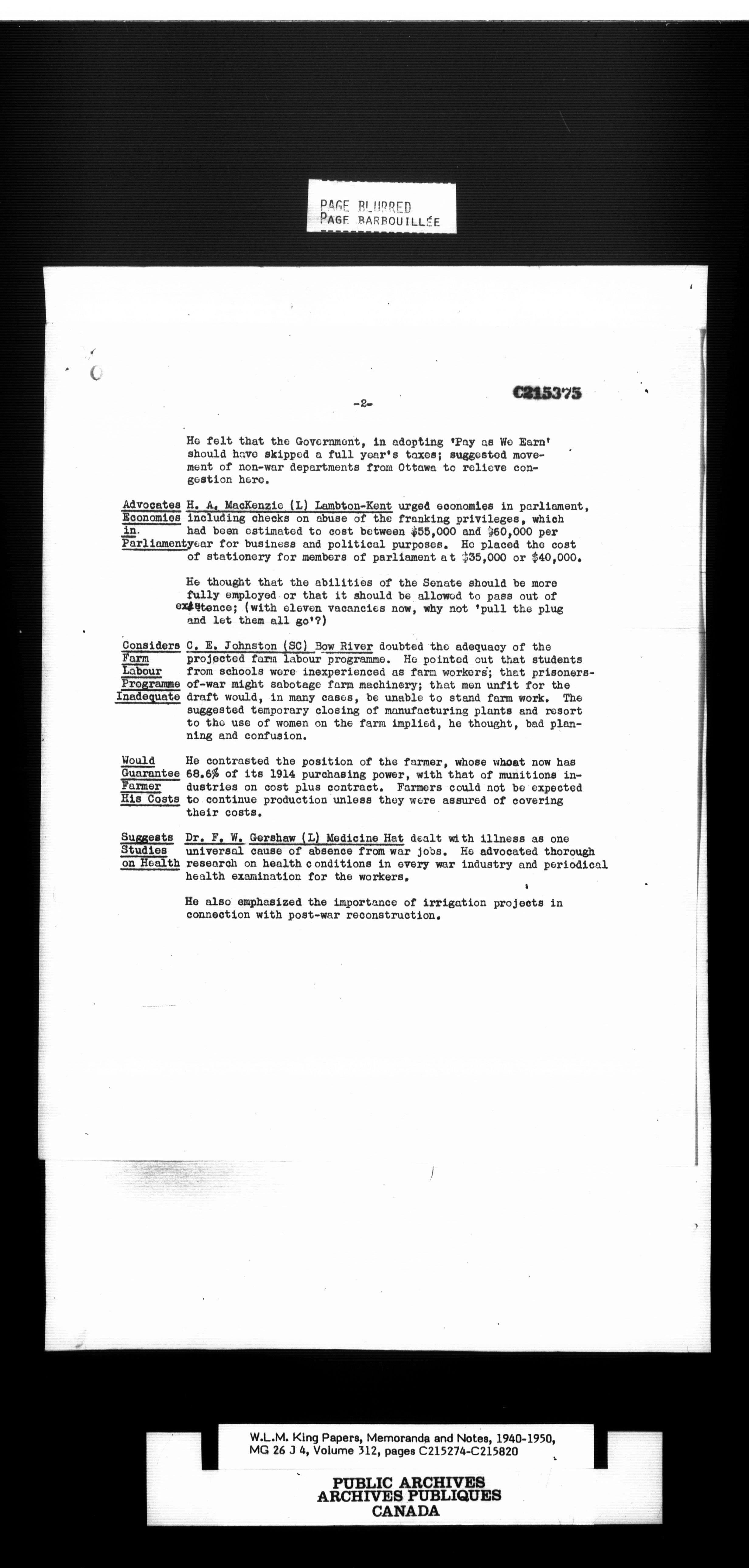 W. L. Mackenzie King : Memoranda and Notes - 1513