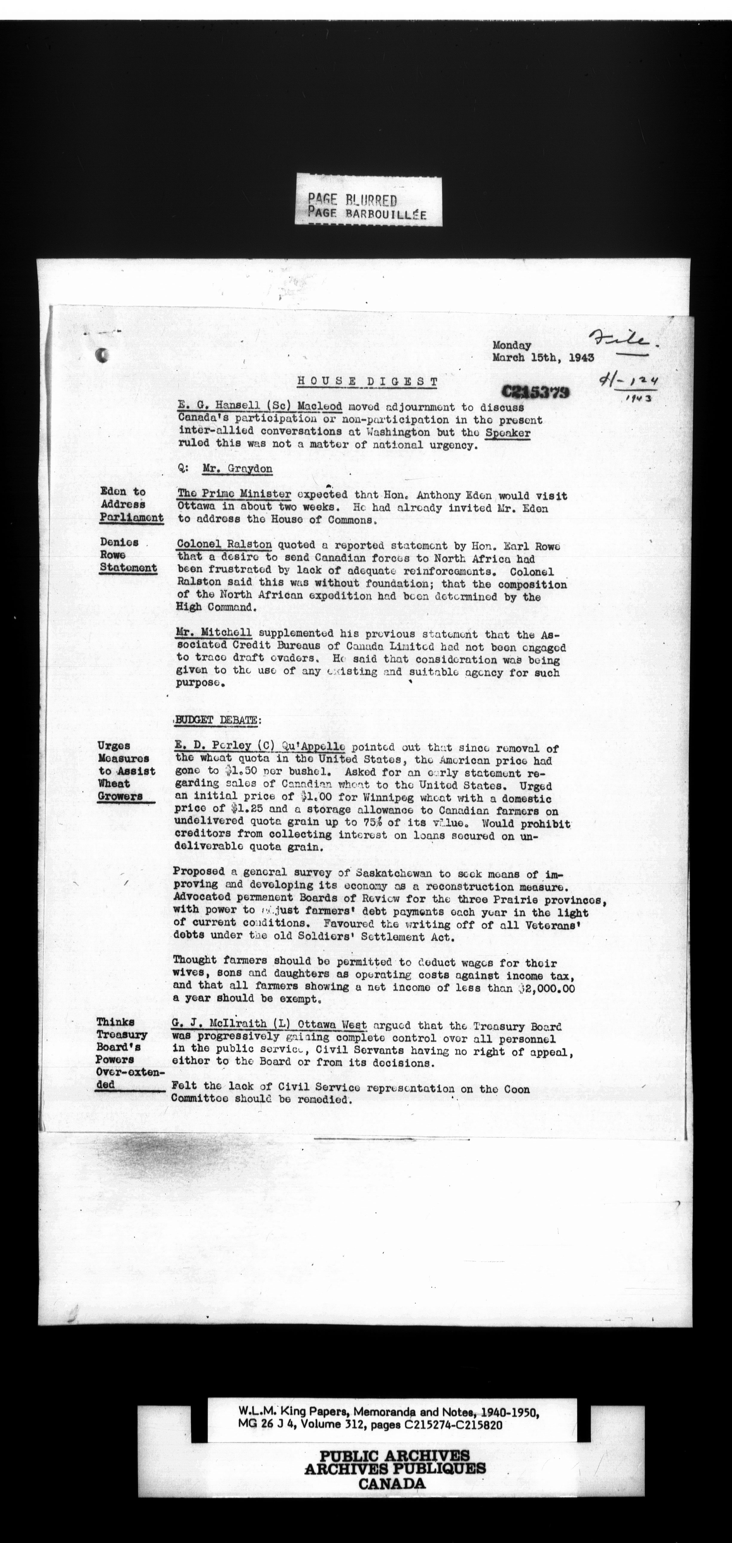 W. L. Mackenzie King : Memoranda and Notes - 1513