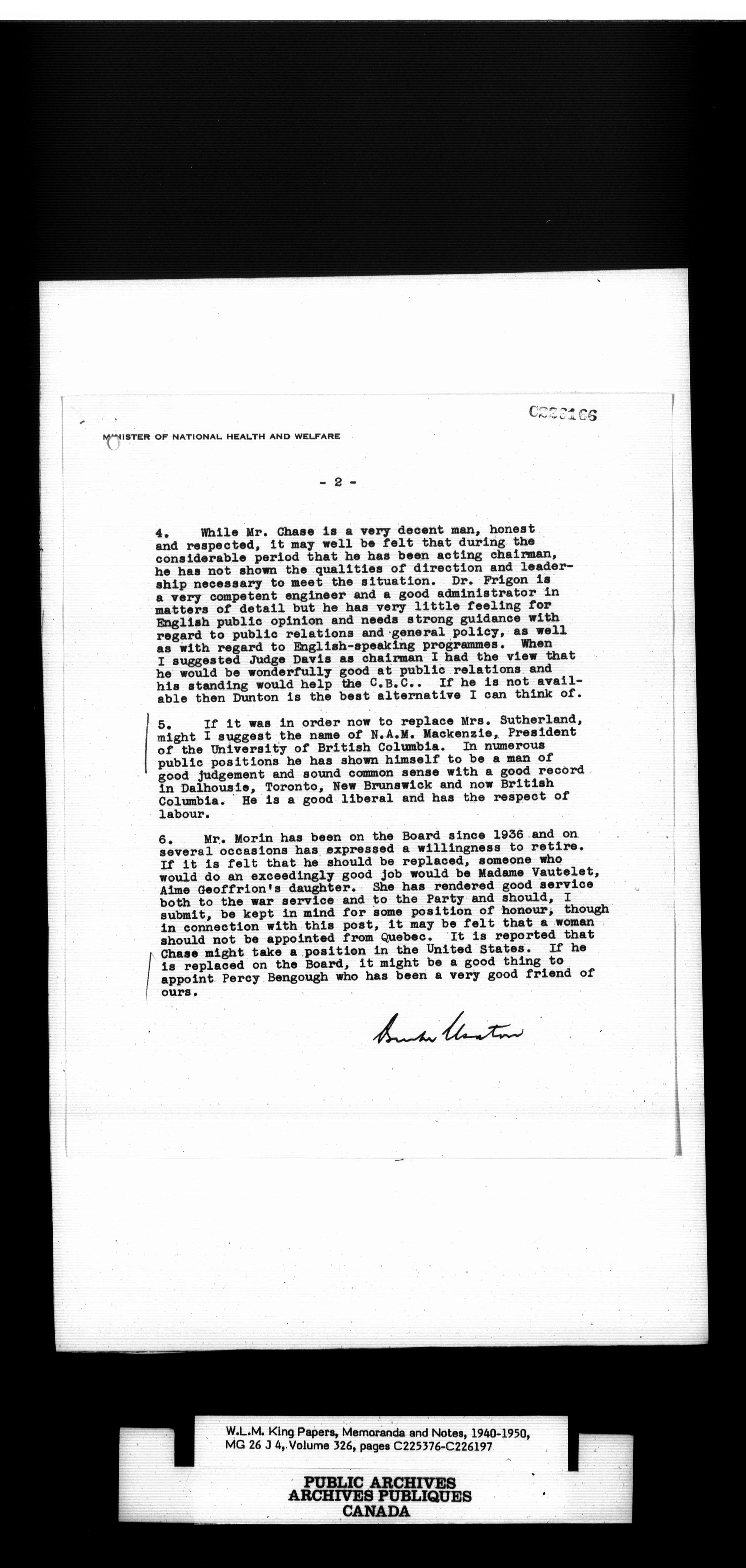 W. L. Mackenzie King : Memoranda and Notes - 1520