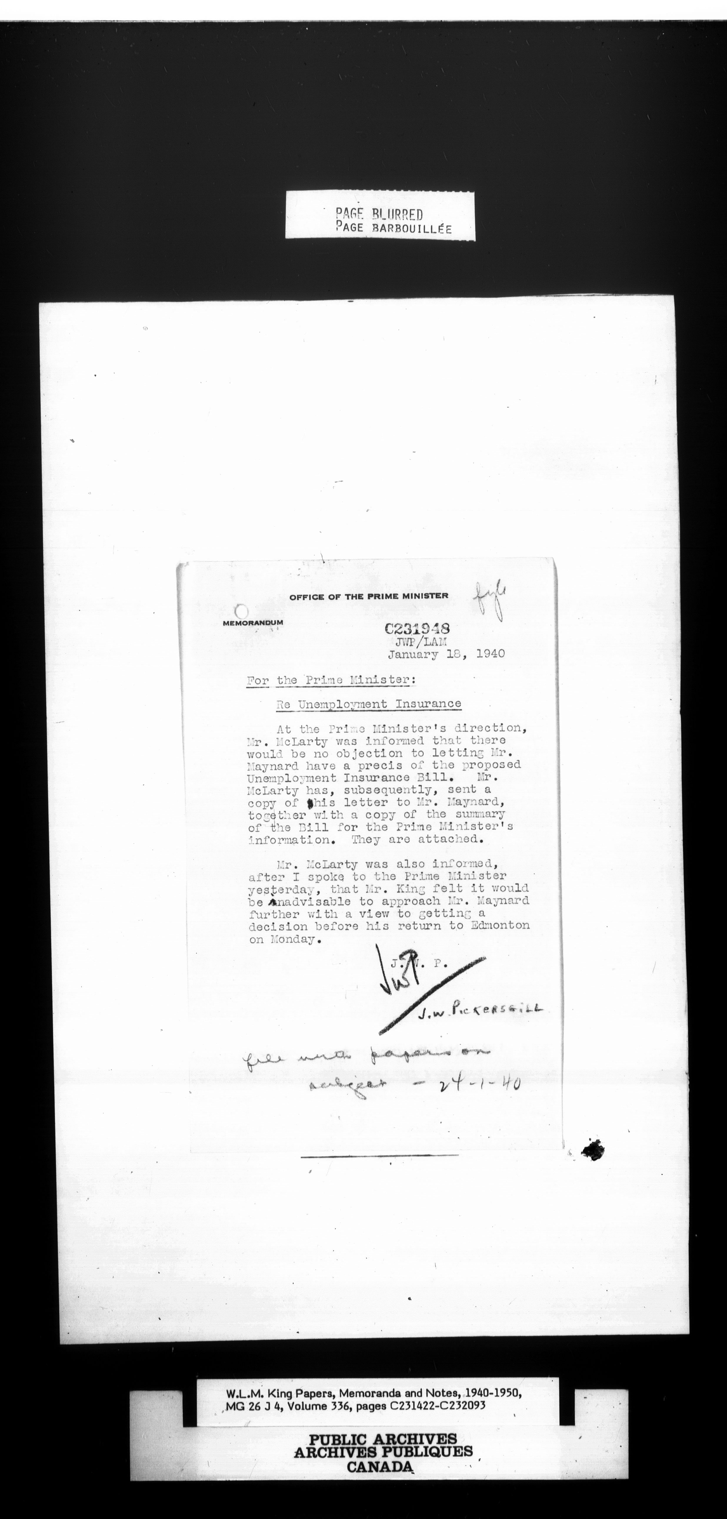 W. L. Mackenzie King : Memoranda and Notes - 1523