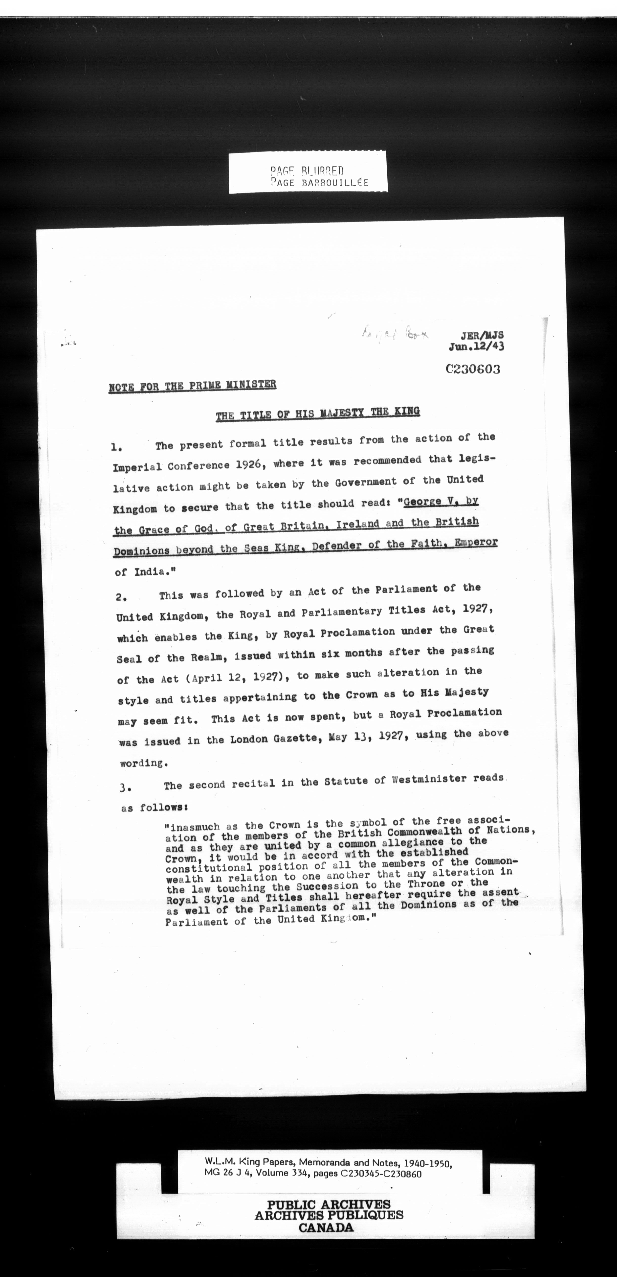 W. L. Mackenzie King : Memoranda and Notes - 1523