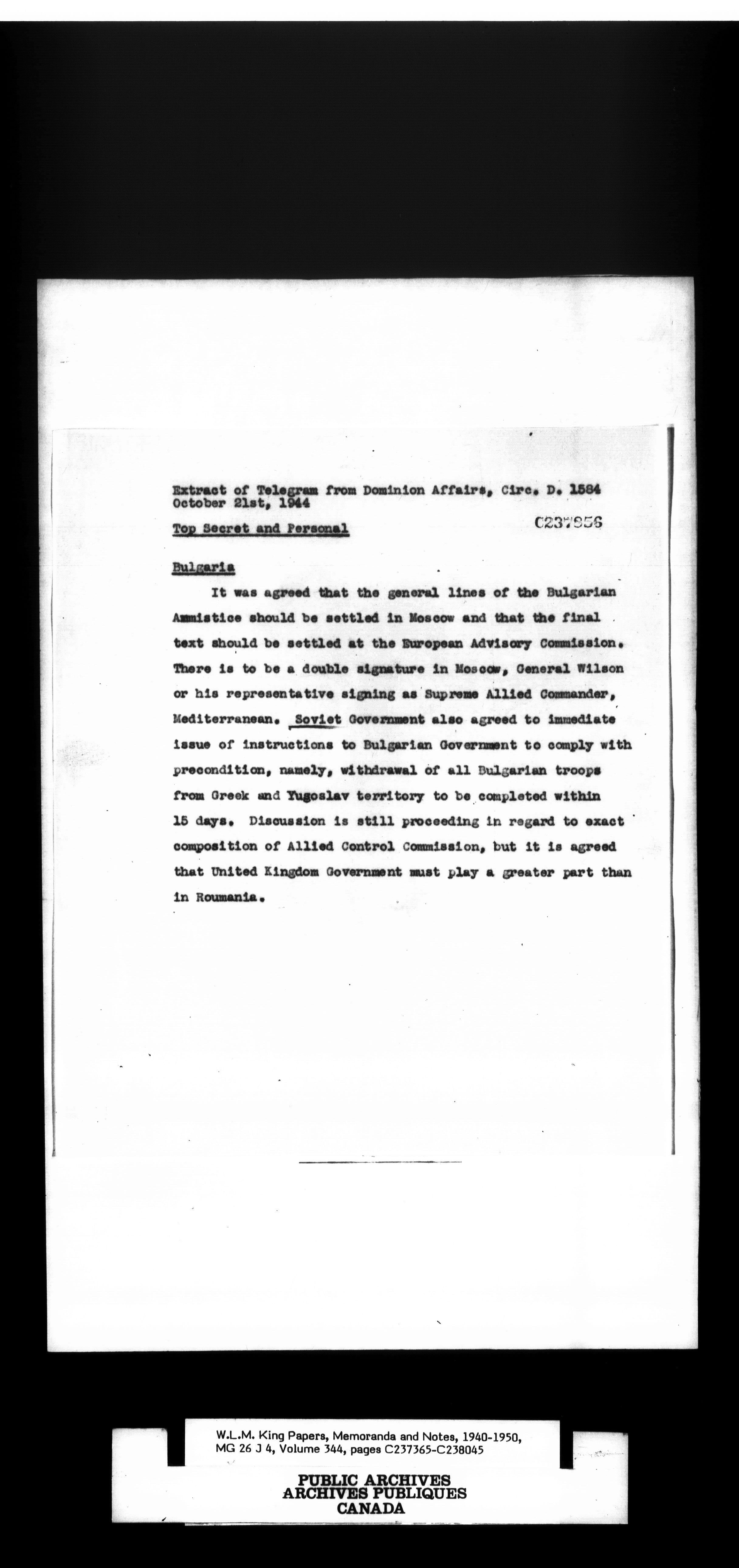 W. L. Mackenzie King : Memoranda and Notes - 1527