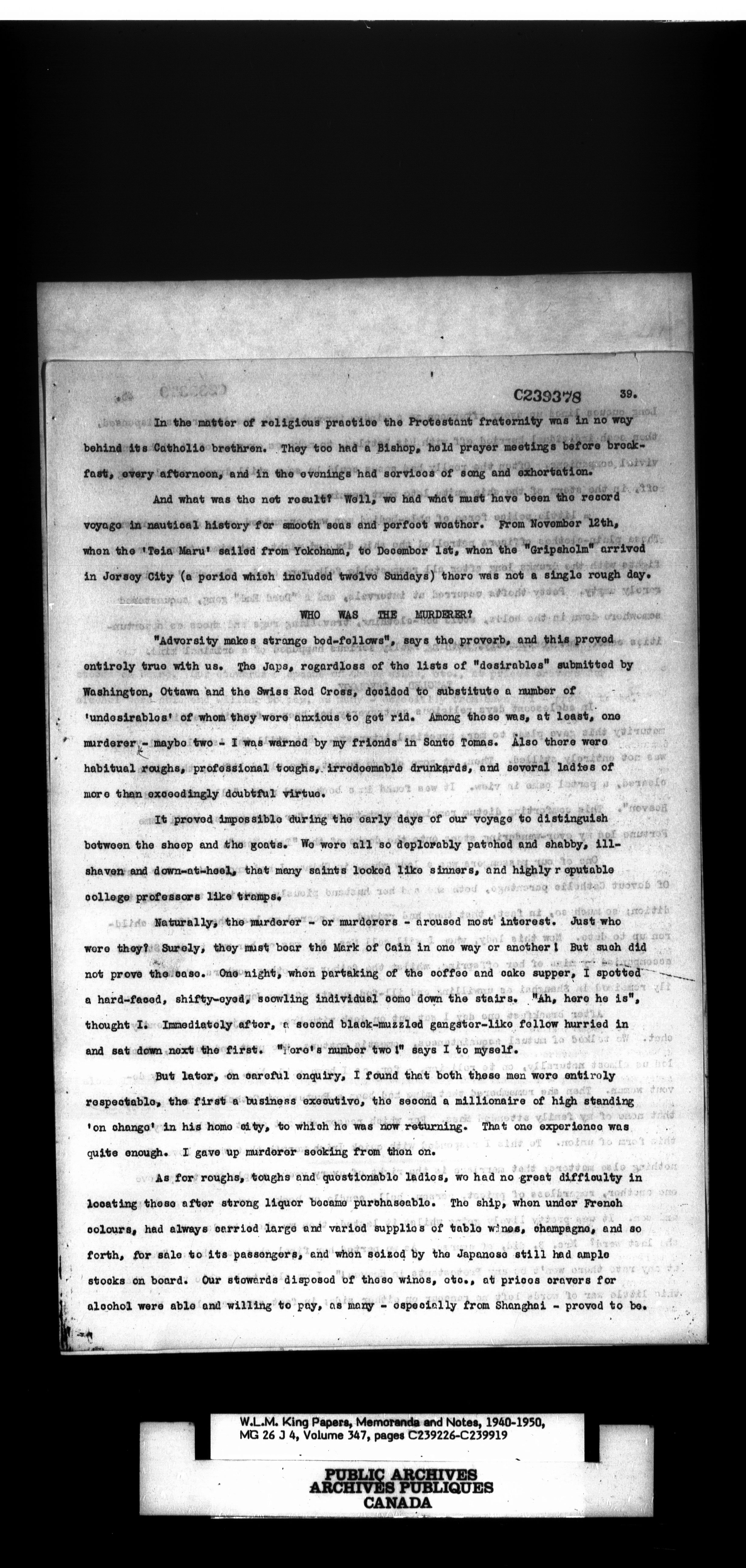 W. L. Mackenzie King : Memoranda and Notes - 1529