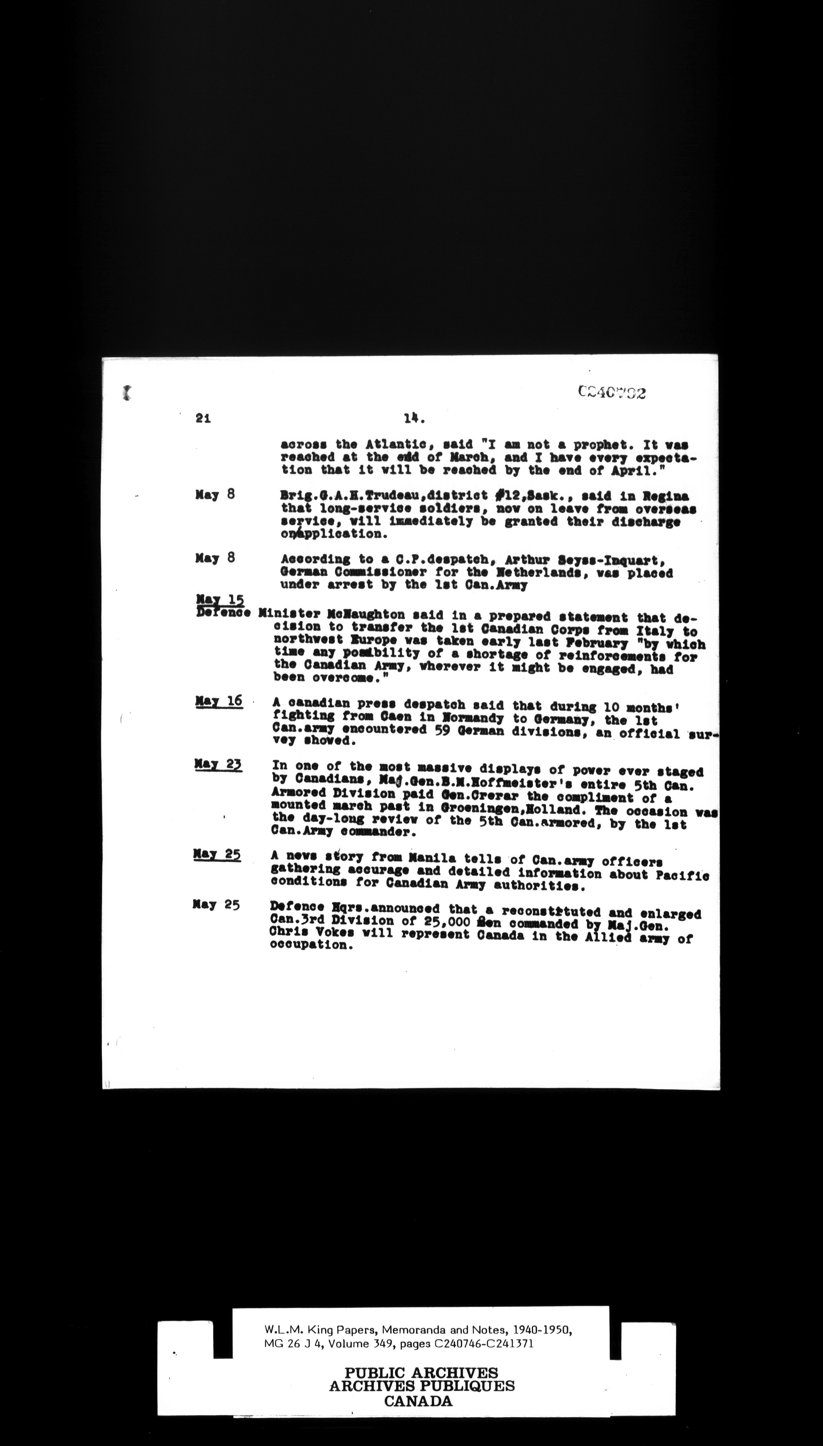 W. L. Mackenzie King : Memoranda and Notes - 1530