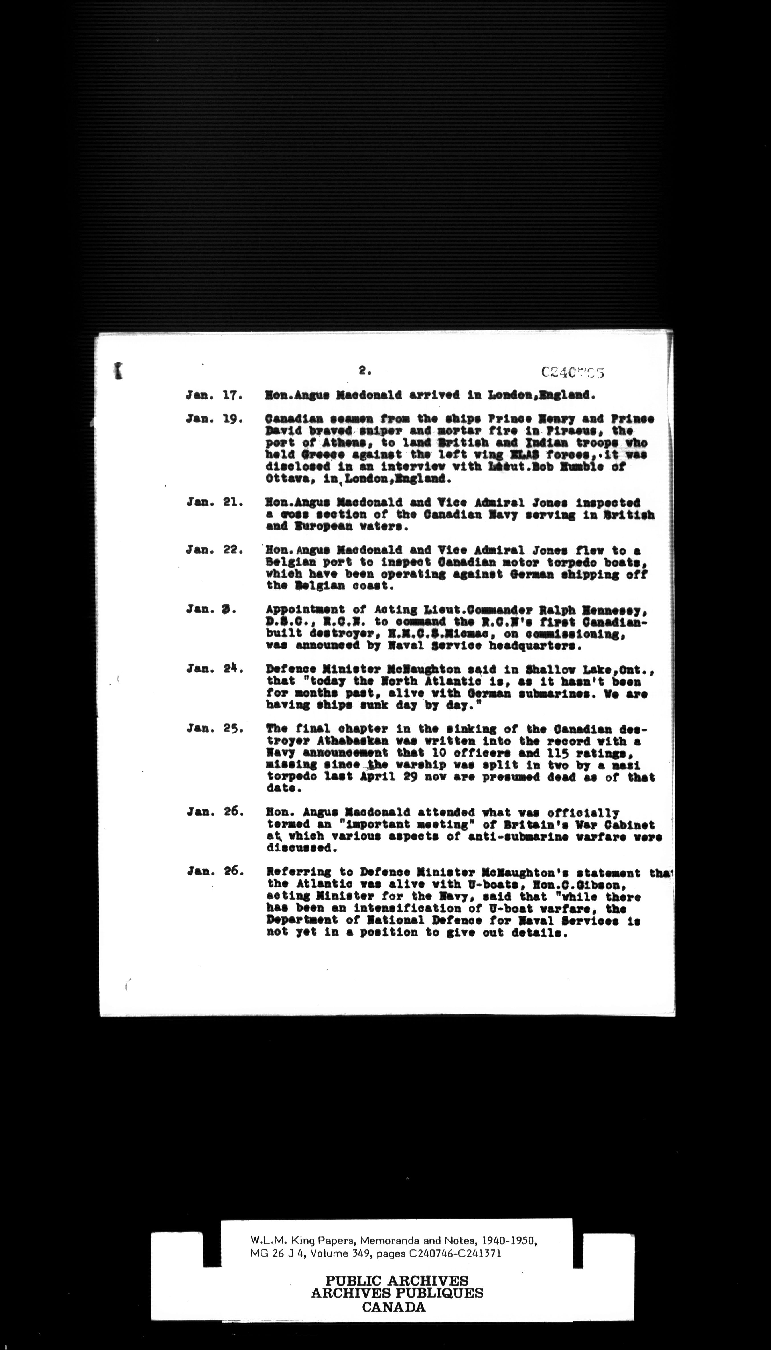 W. L. Mackenzie King : Memoranda and Notes - 1530