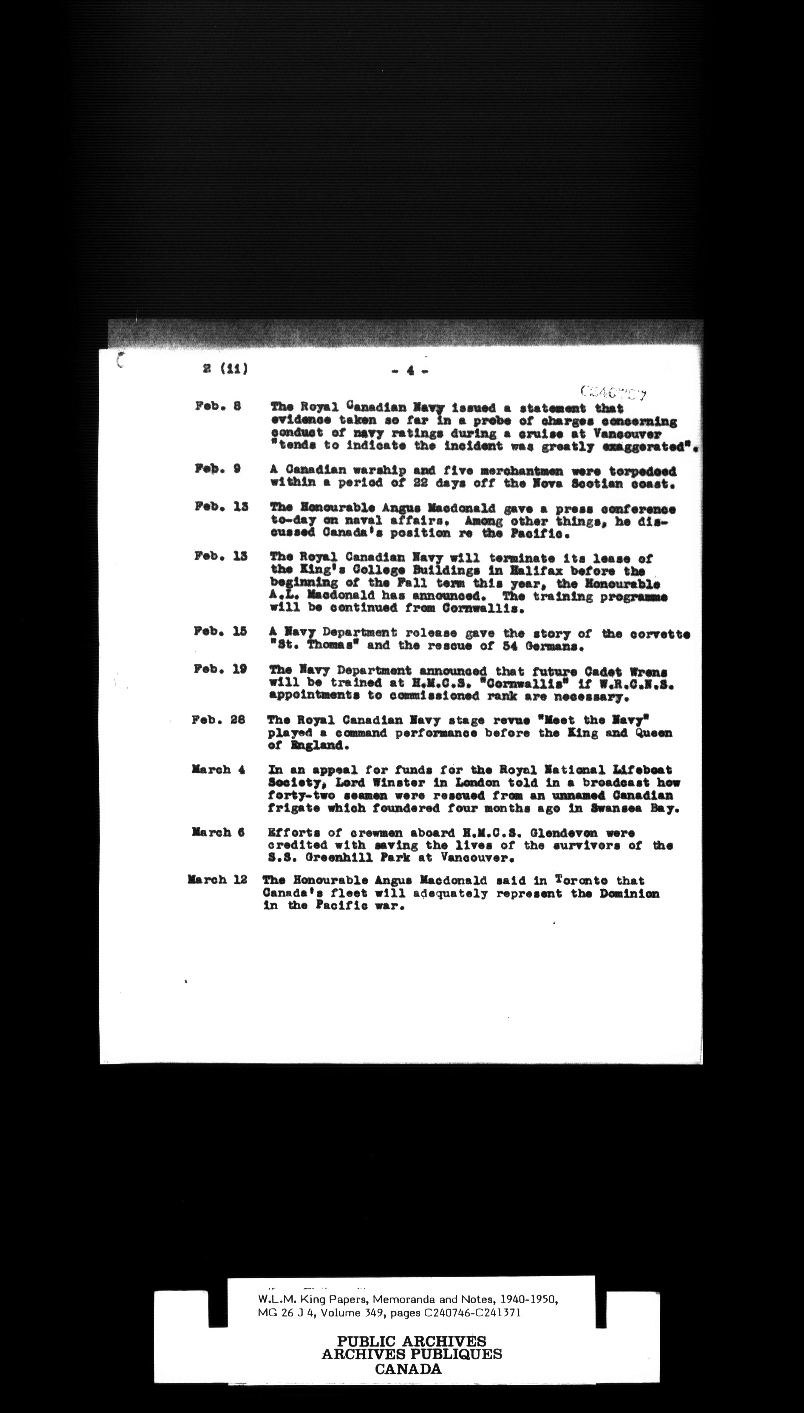 W. L. Mackenzie King : Memoranda and Notes - 1530