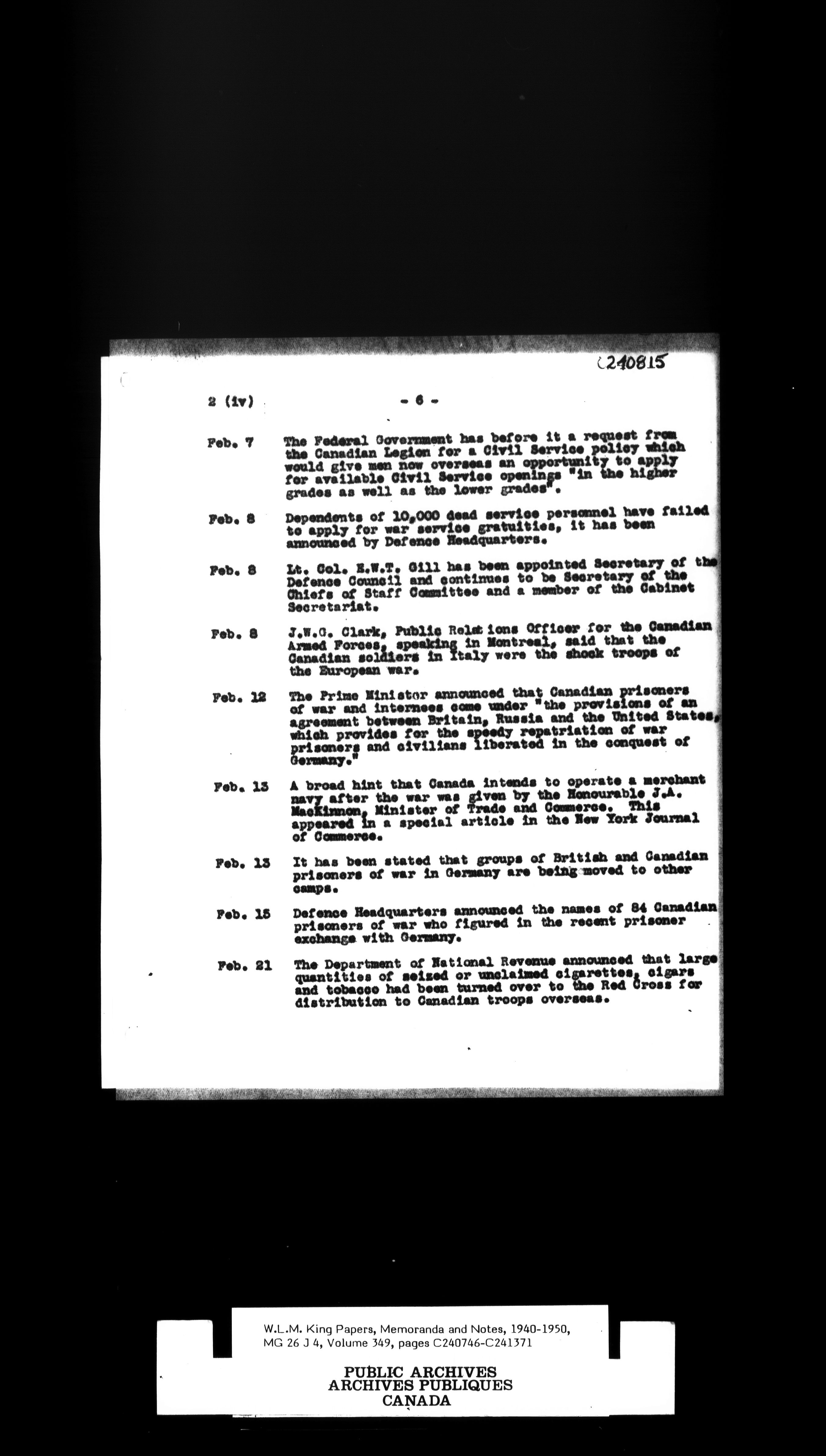 W. L. Mackenzie King : Memoranda and Notes - 1530