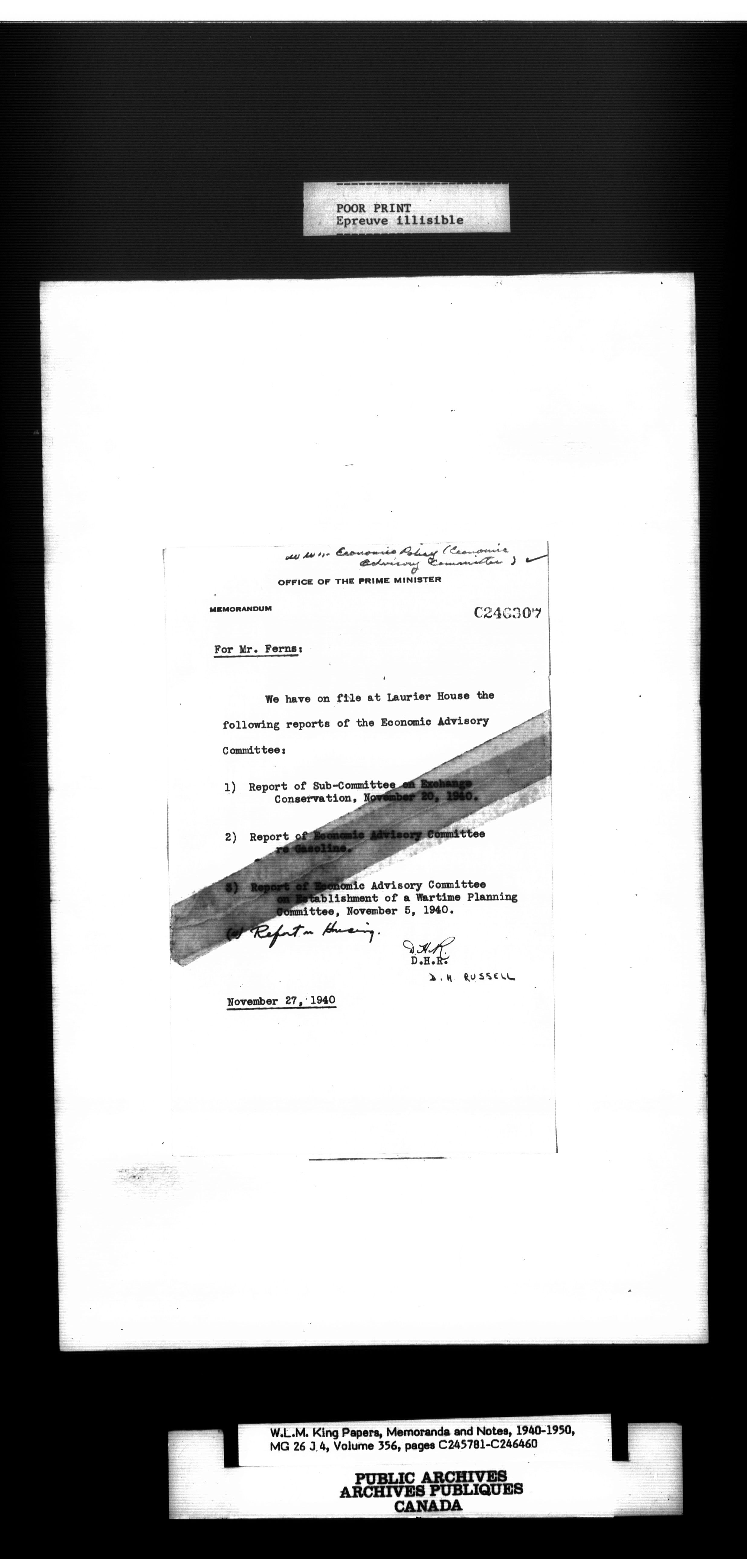 W. L. Mackenzie King : Memoranda and Notes - 1533