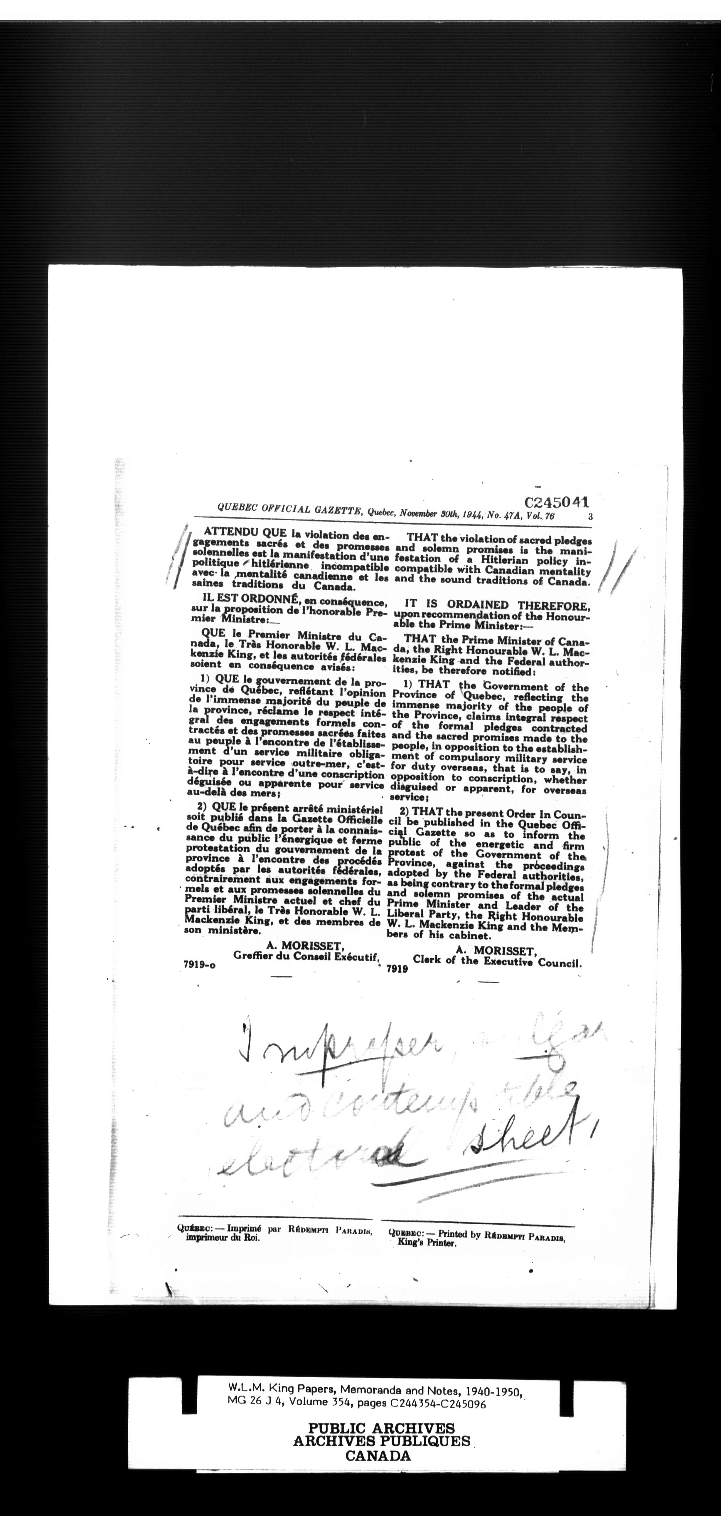 W. L. Mackenzie King : Memoranda and Notes - 1533