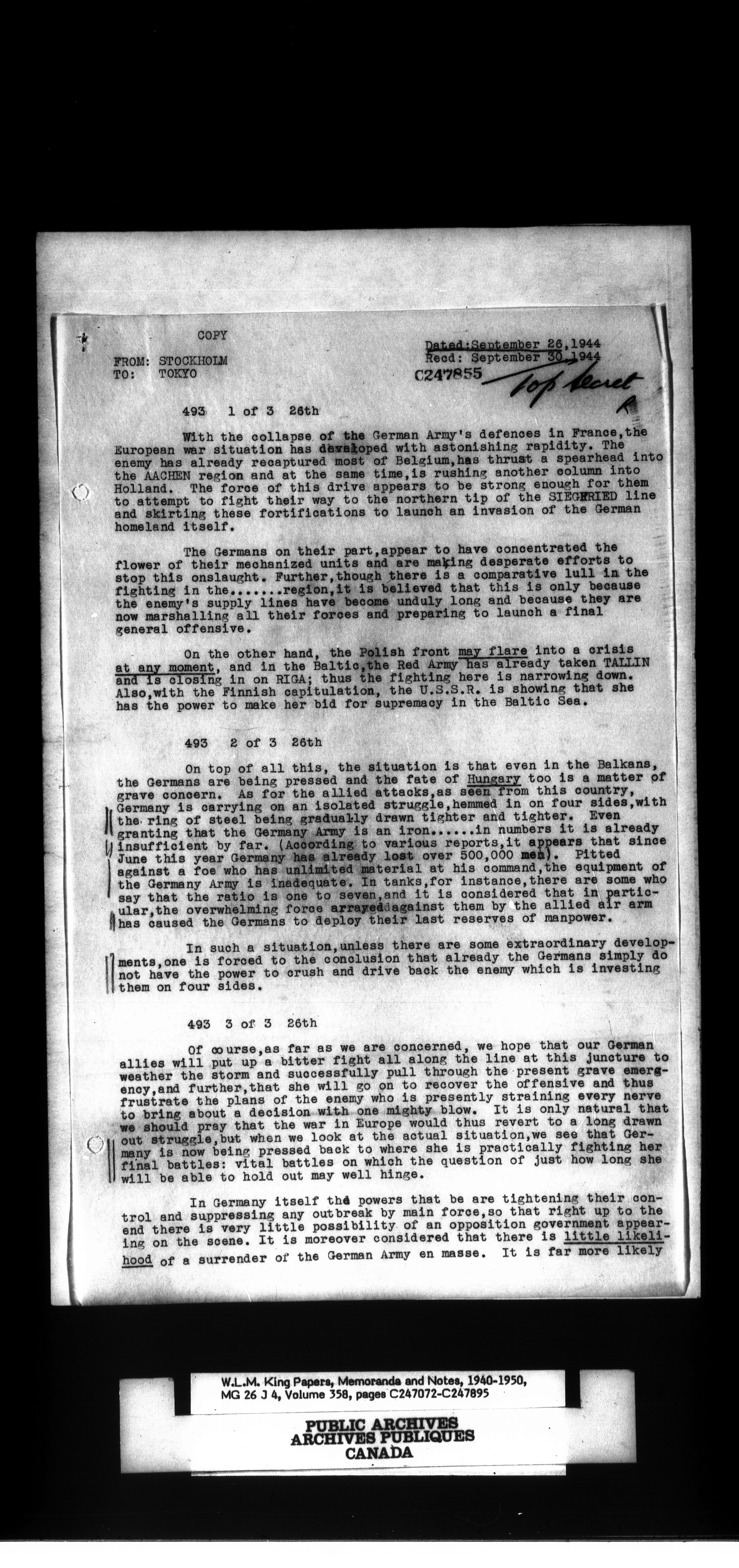 W. L. Mackenzie King : Memoranda and Notes - 1535