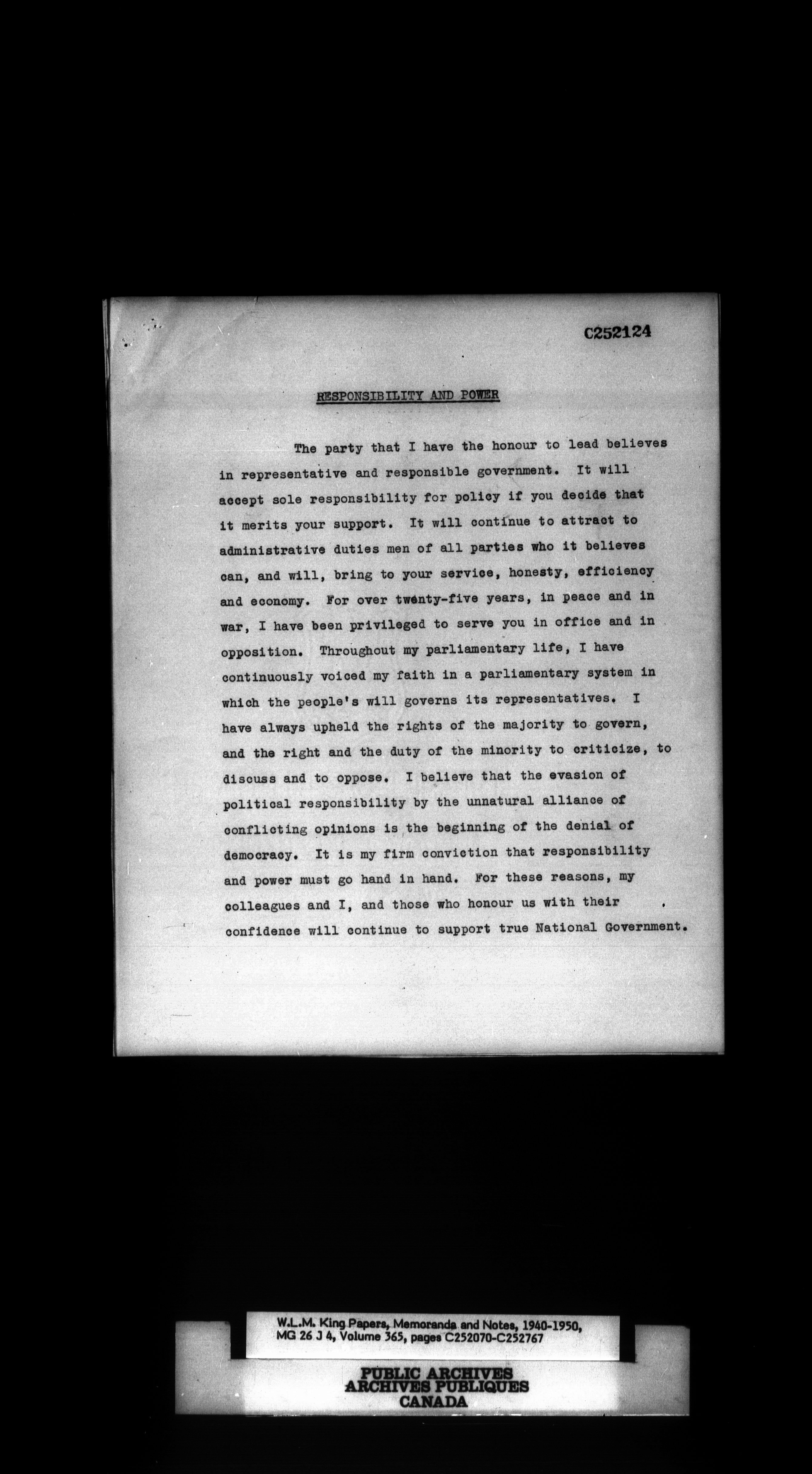 W. L. Mackenzie King : Memoranda and Notes - 1538