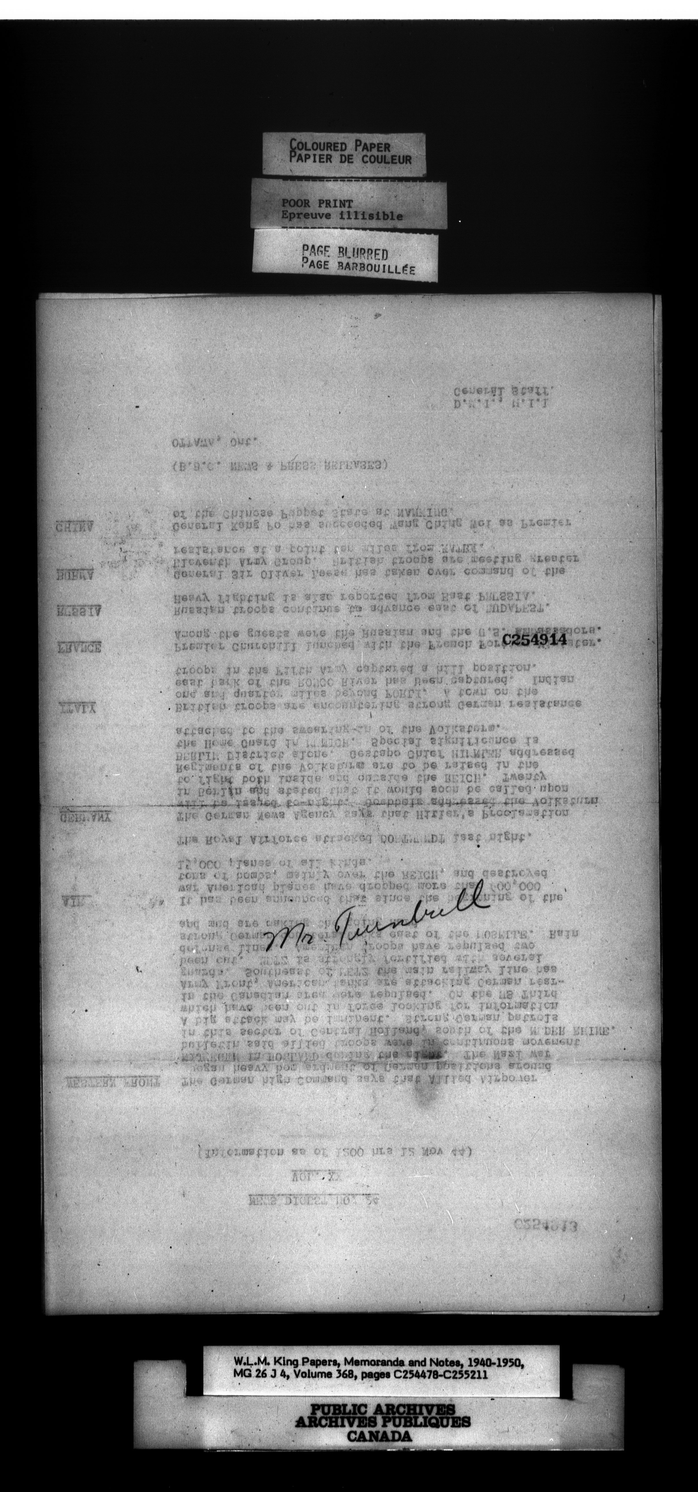W. L. Mackenzie King : Memoranda and Notes - 1539