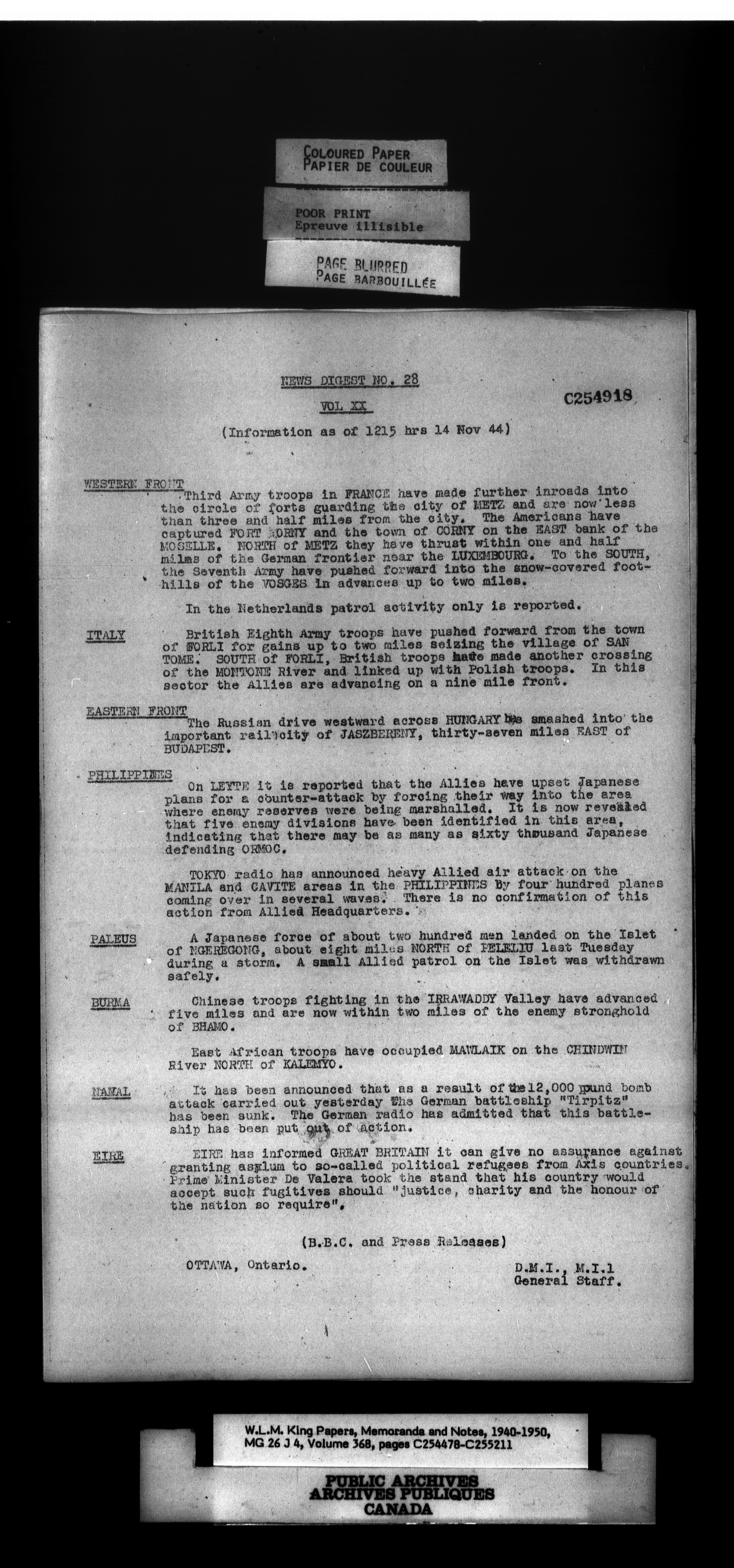 W. L. Mackenzie King : Memoranda and Notes - 1539