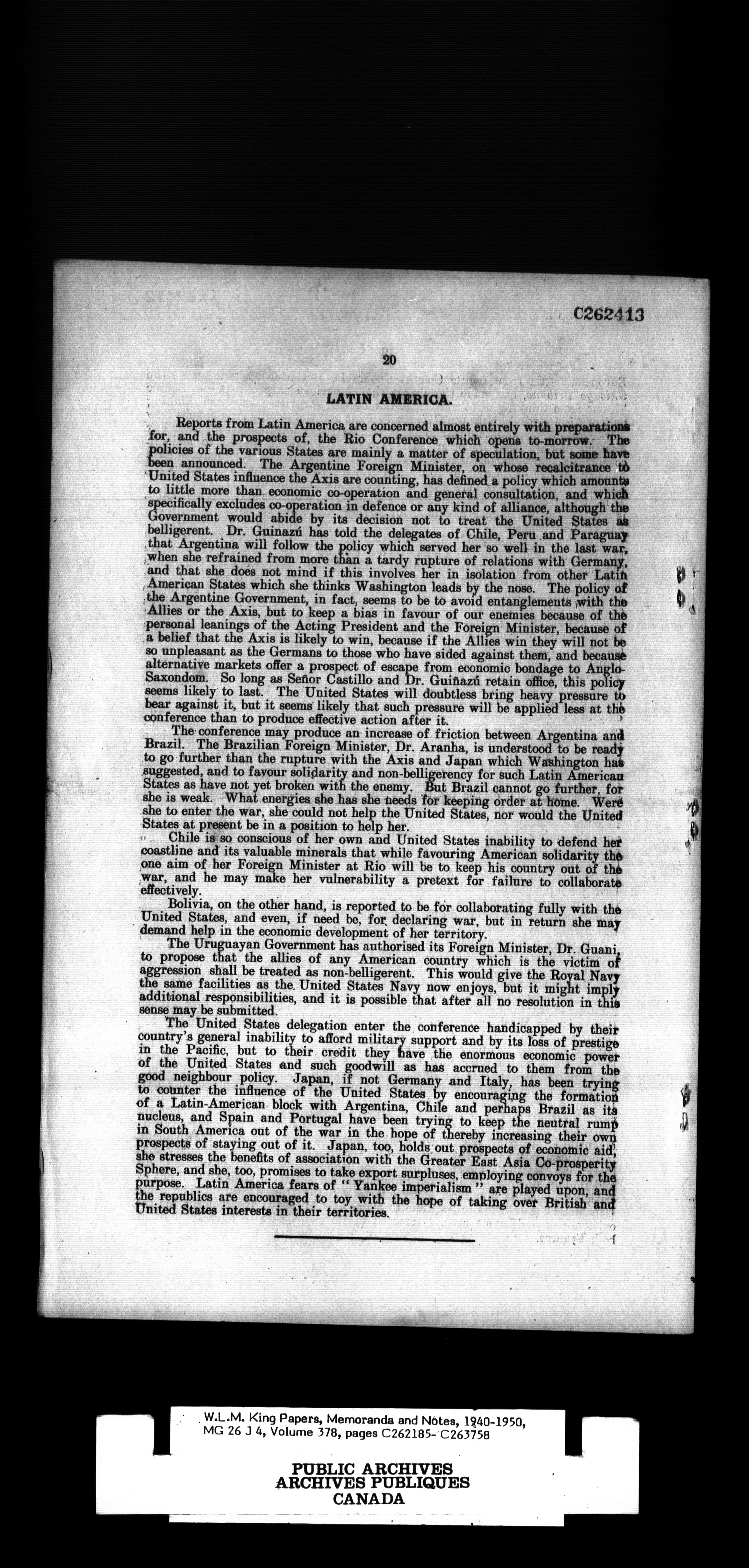 W. L. Mackenzie King : Memoranda and Notes - 1545