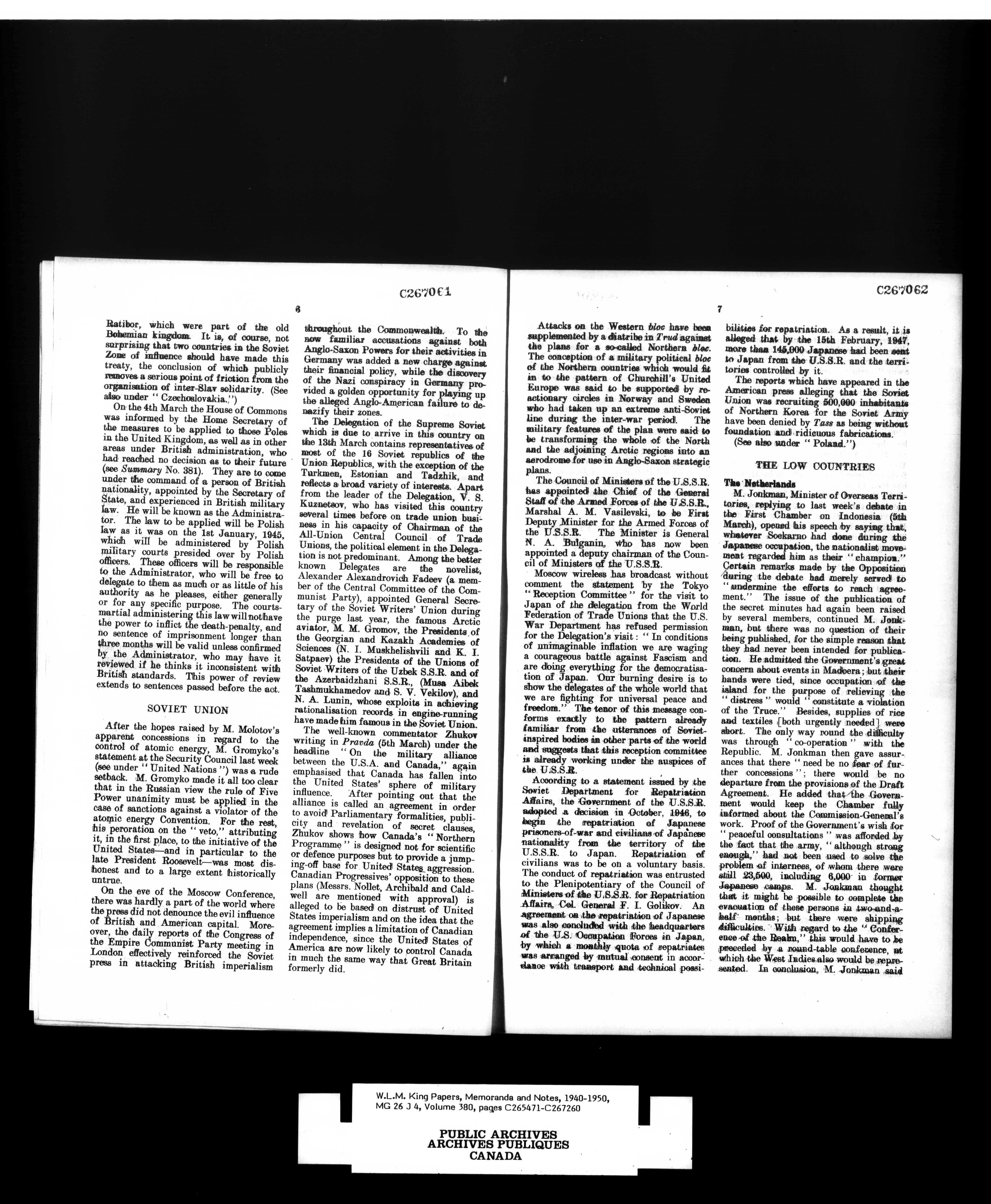 W. L. Mackenzie King : Memoranda and Notes - 1547