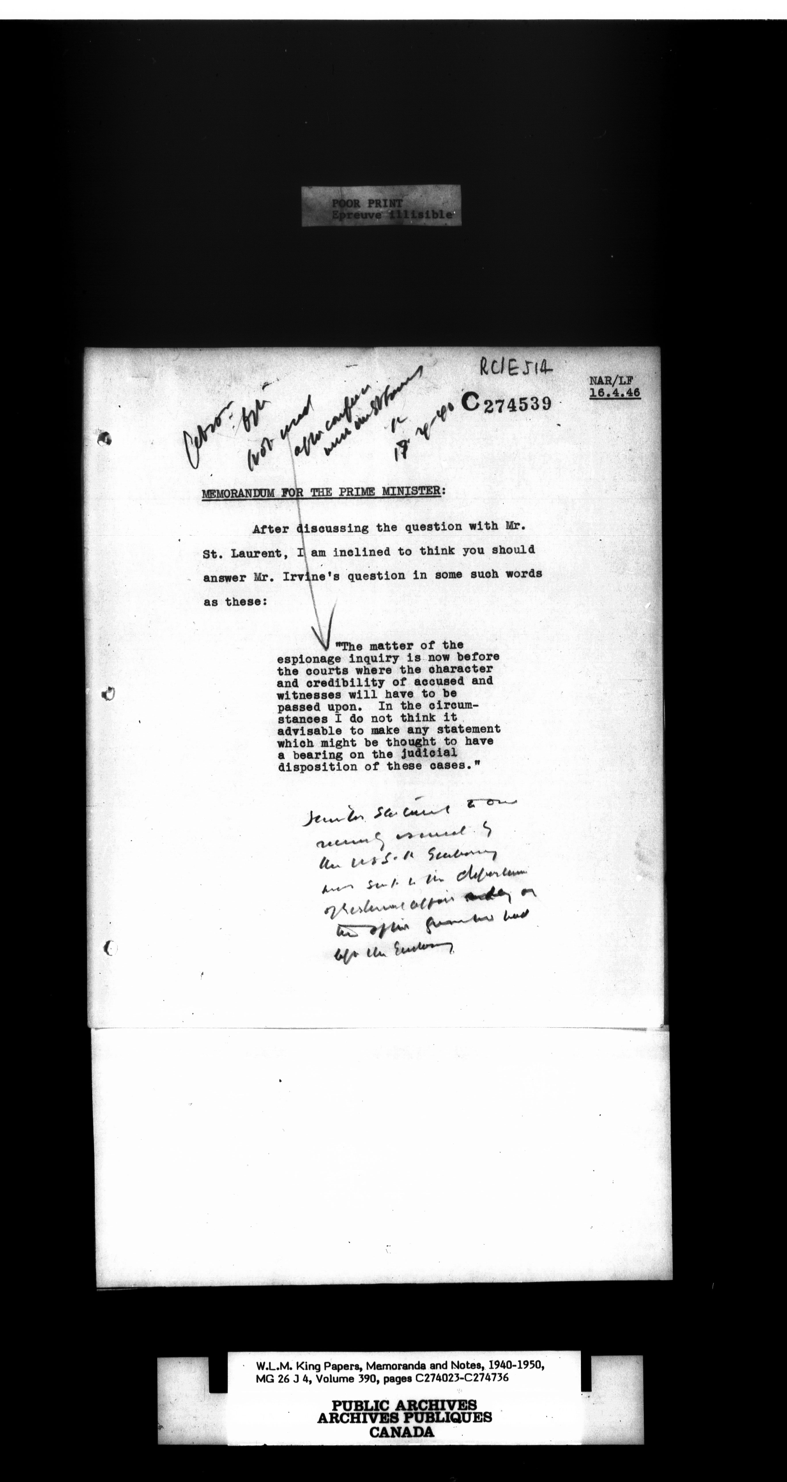 W. L. Mackenzie King : Memoranda and Notes - 1552