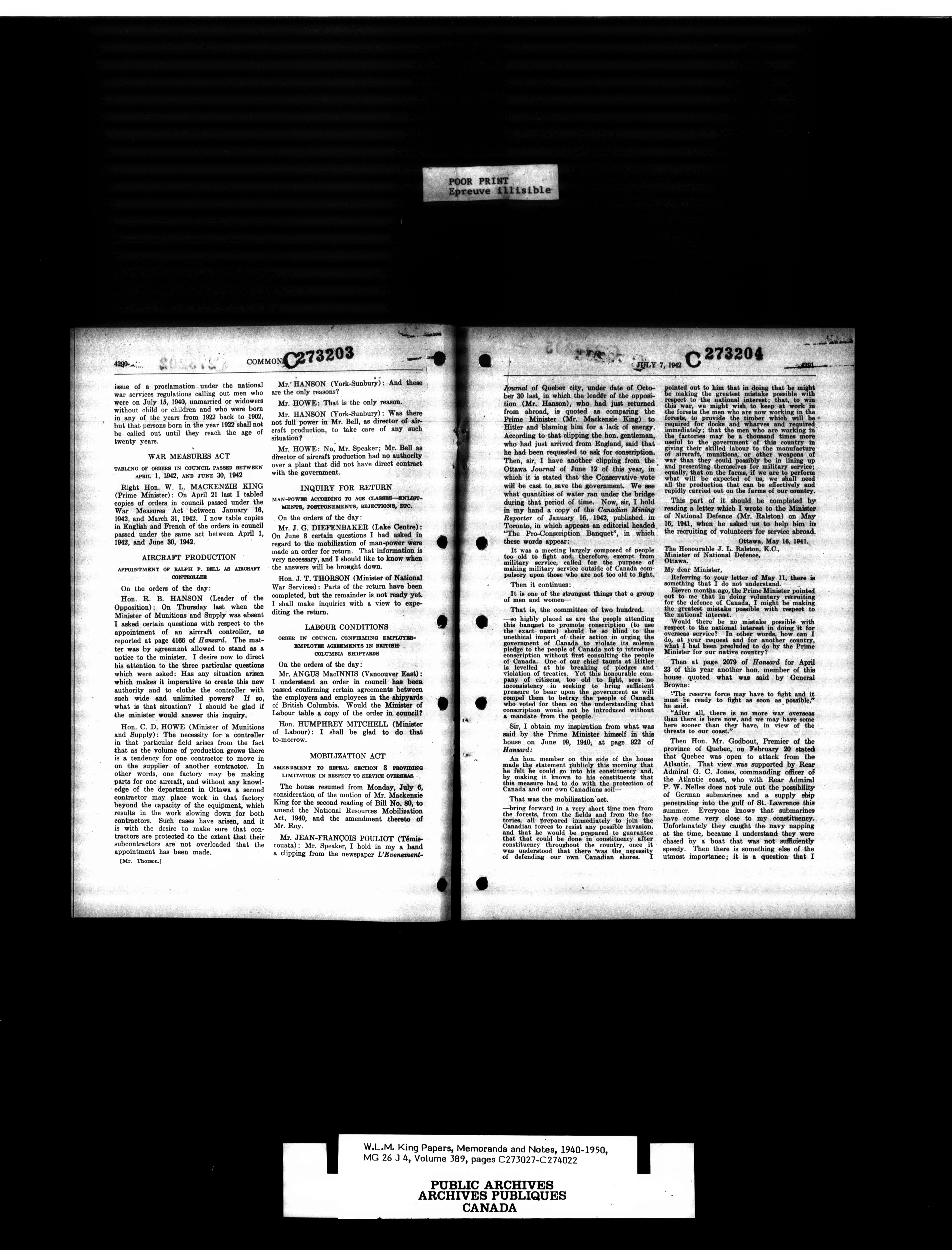 William Lyon Mackenzie King : Memoranda and notes (J4) : H-1552
