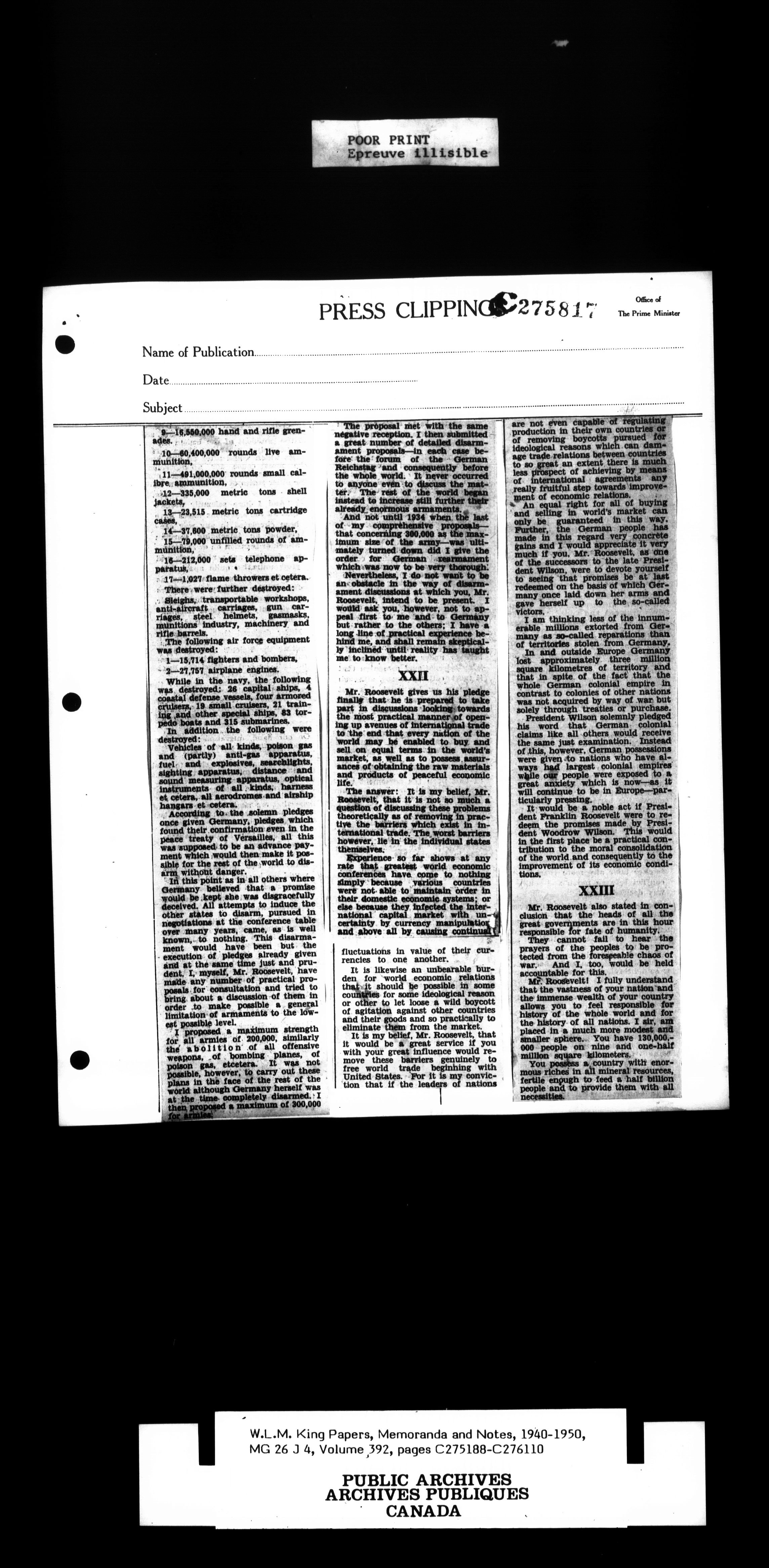 W. L. Mackenzie King : Memoranda and Notes - 1553