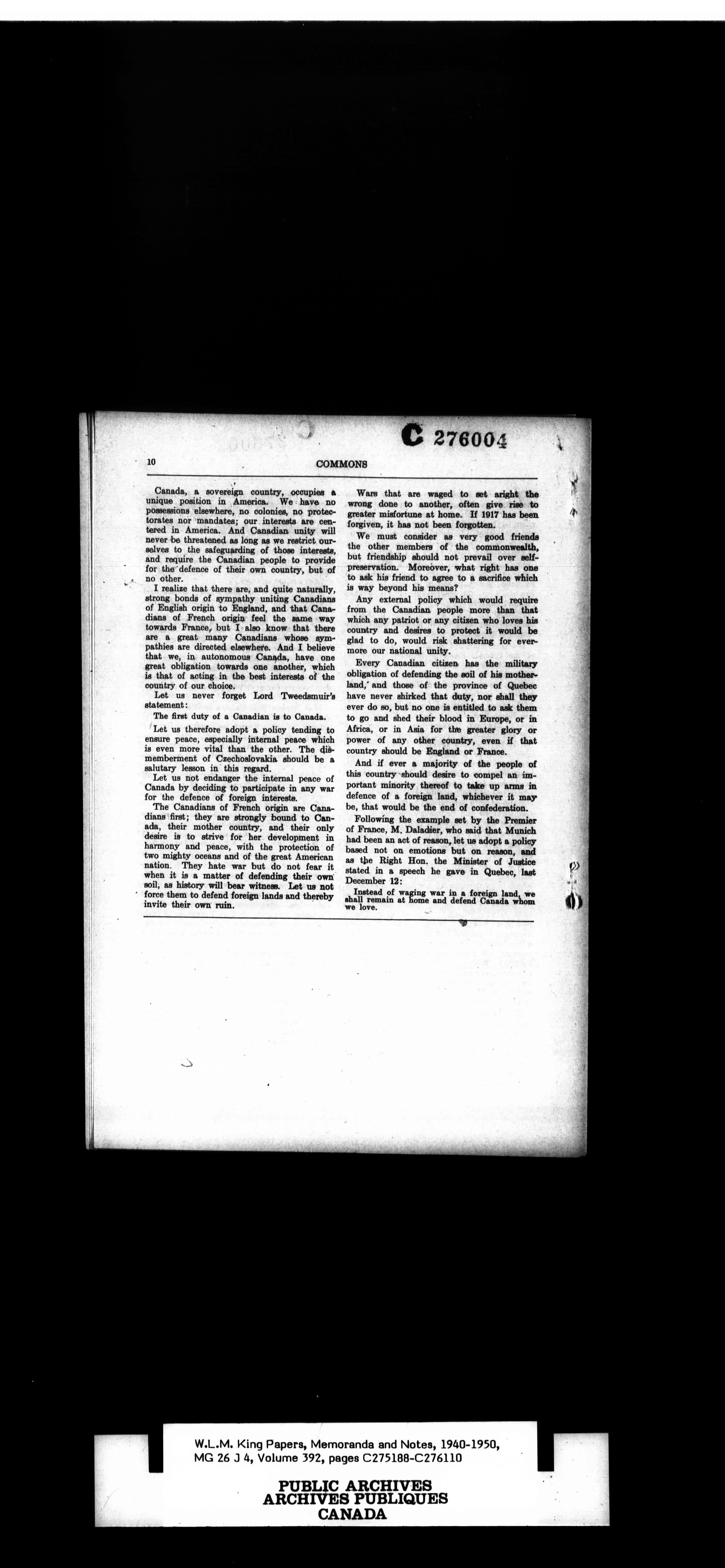 William Lyon Mackenzie King : Memoranda and notes (J4) : H-1554