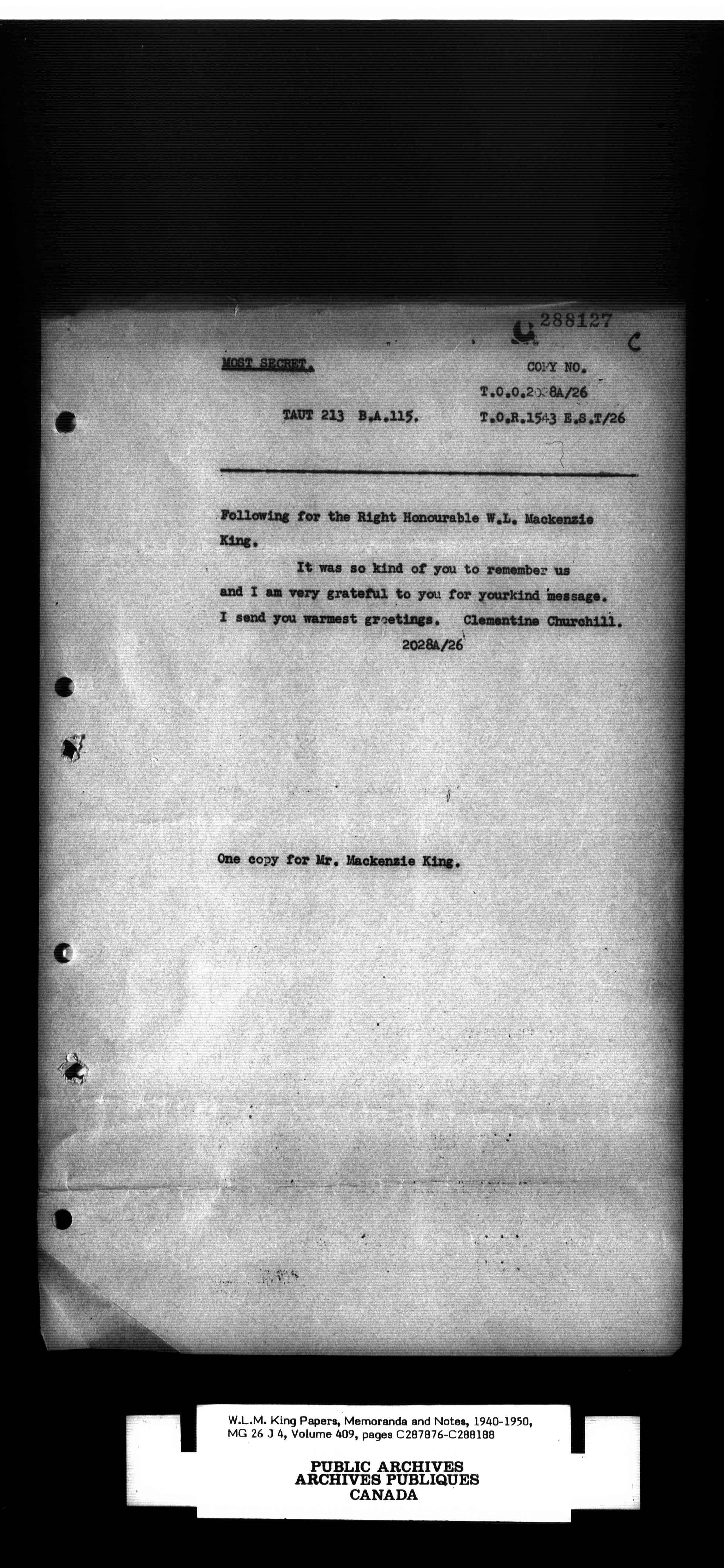 W. L. Mackenzie King : Memoranda and Notes - 1562
