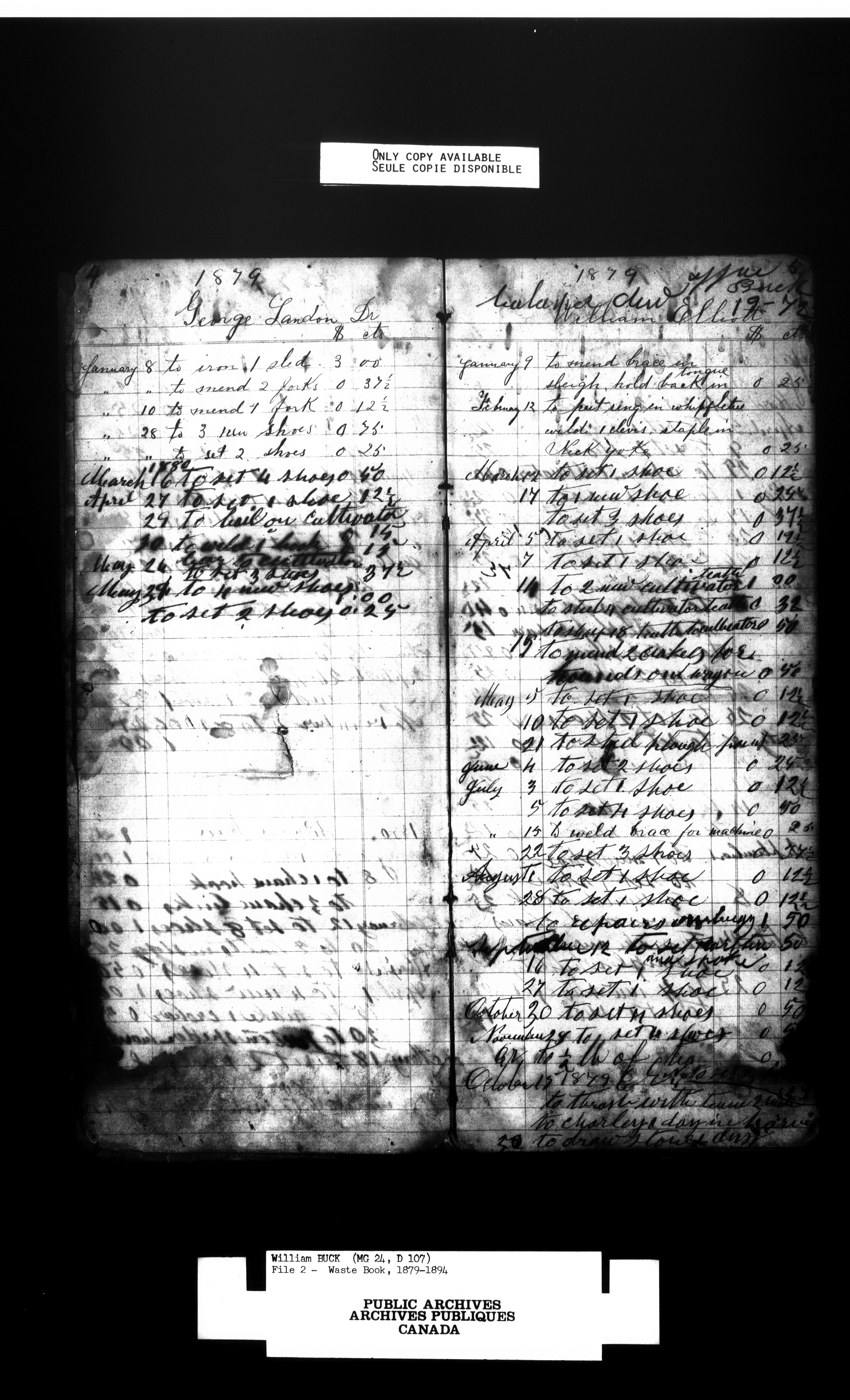 William Buck's waste books containing rough accounts of blacksmith work done, 1854-1862, 1879-1984Index to accounts and personal papers - 1563