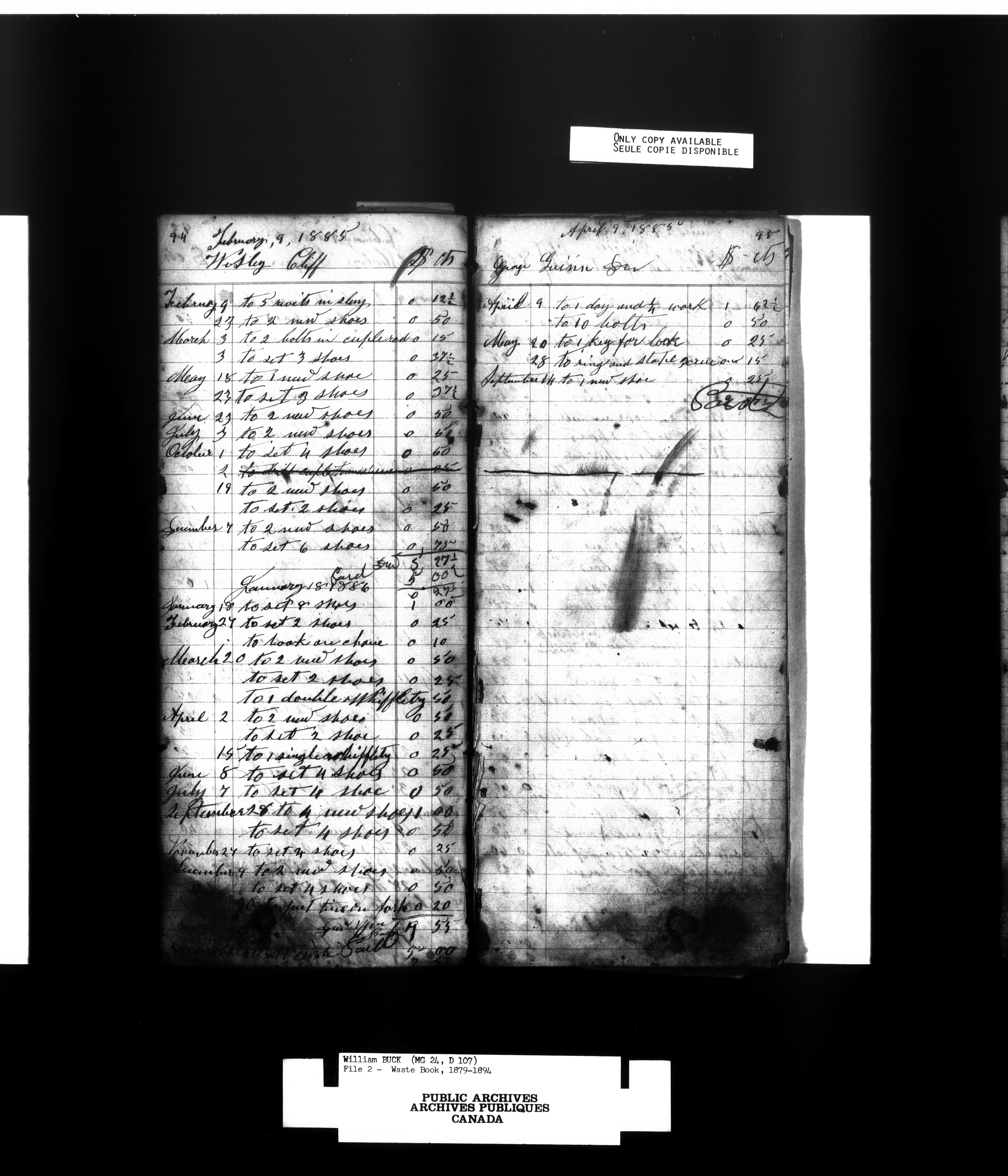William Buck's waste books containing rough accounts of blacksmith work done, 1854-1862, 1879-1984Index to accounts and personal papers - 1563
