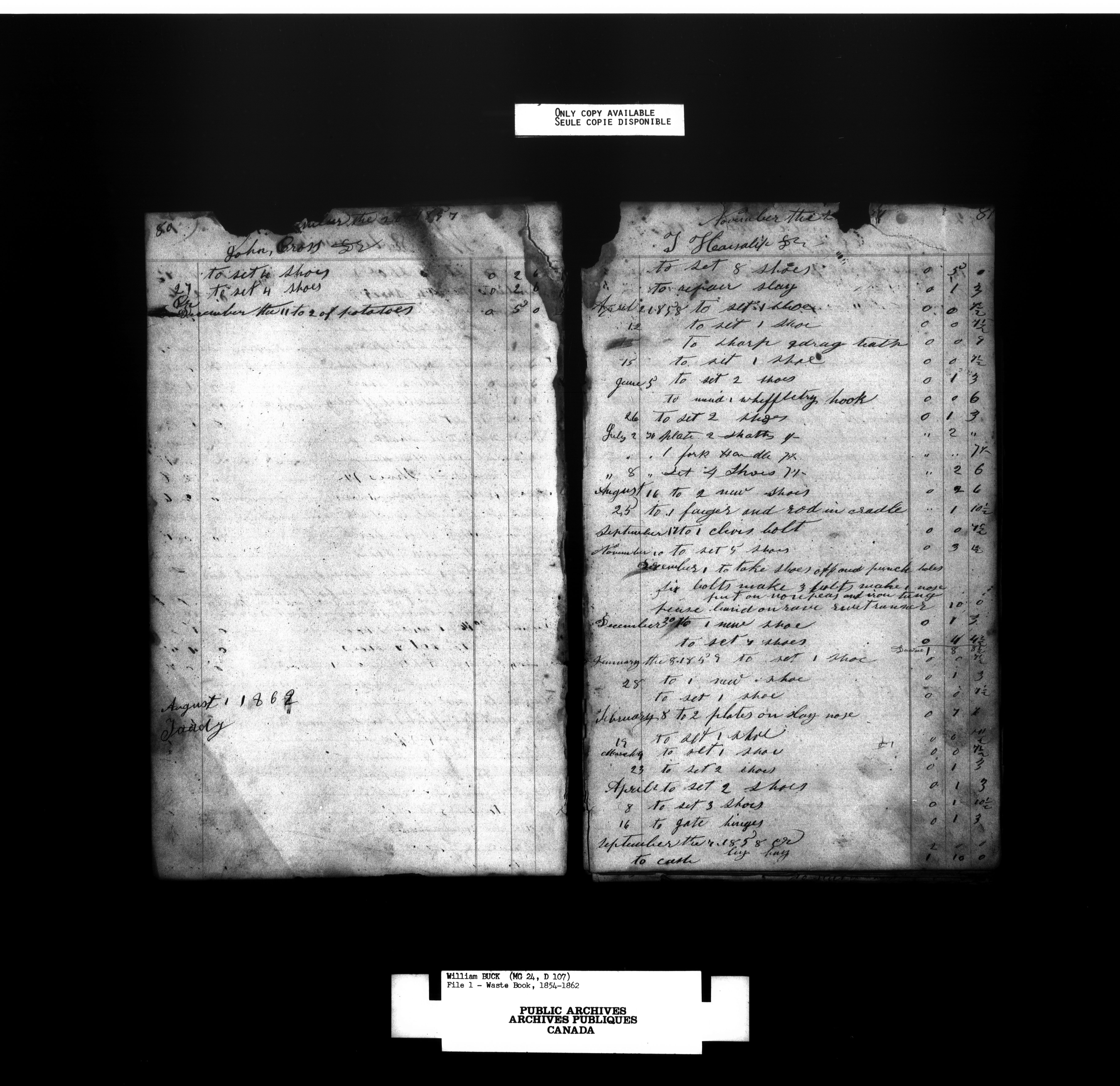 William Buck's waste books containing rough accounts of blacksmith work done, 1854-1862, 1879-1984Index to accounts and personal papers - 1563