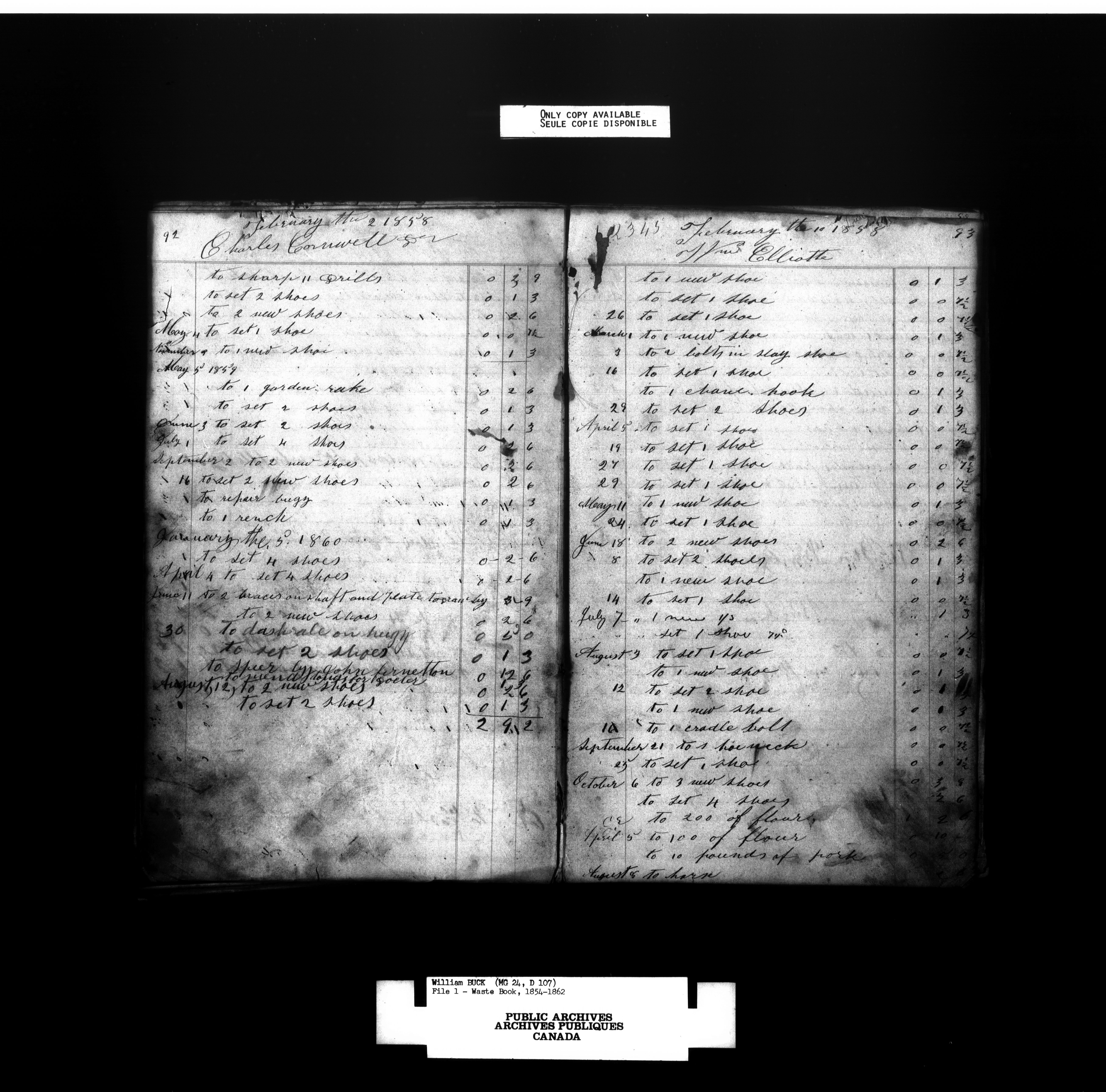 William Buck's waste books containing rough accounts of blacksmith work done, 1854-1862, 1879-1984Index to accounts and personal papers - 1563