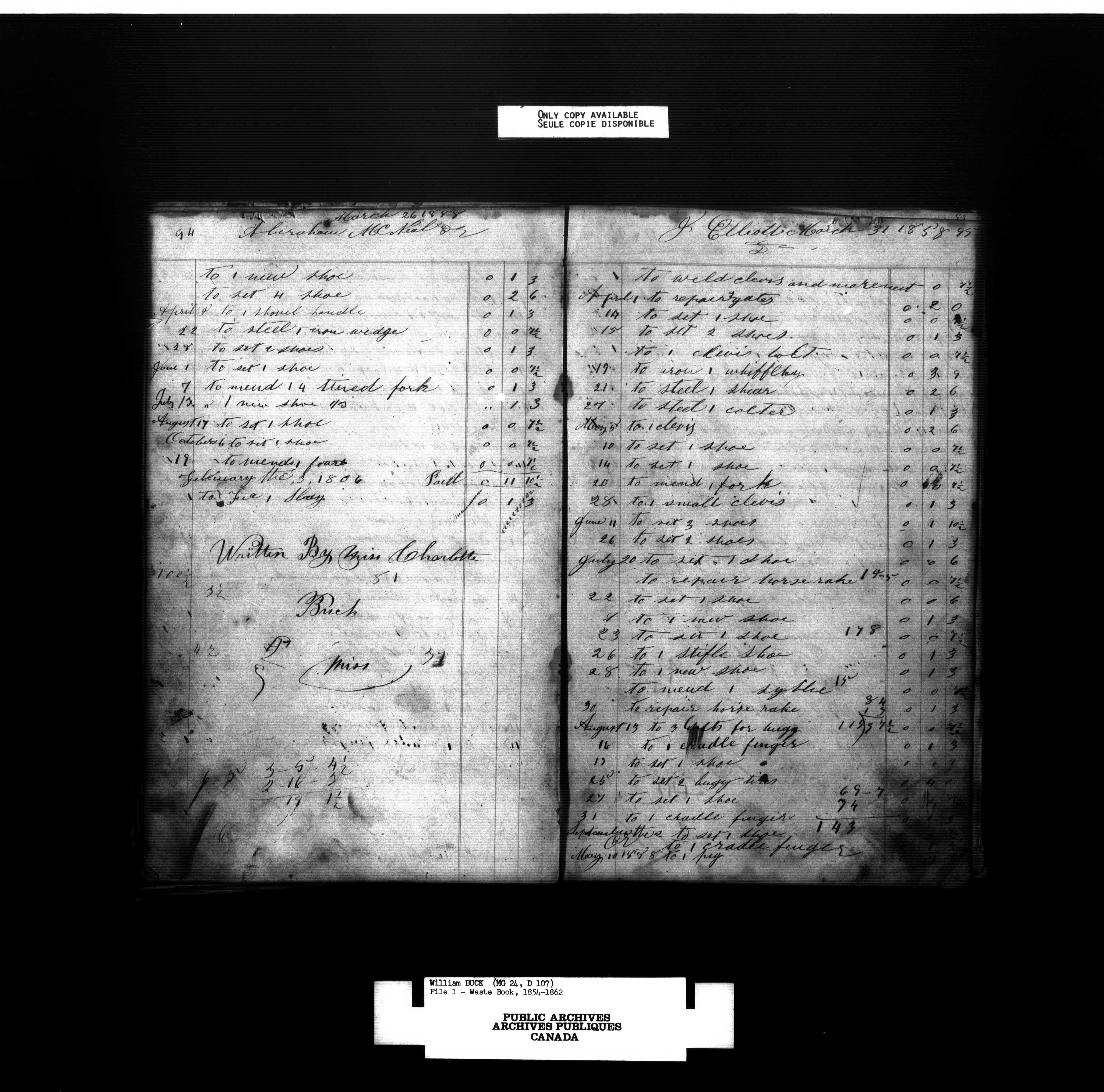 William Buck's waste books containing rough accounts of blacksmith work done, 1854-1862, 1879-1984Index to accounts and personal papers - 1563
