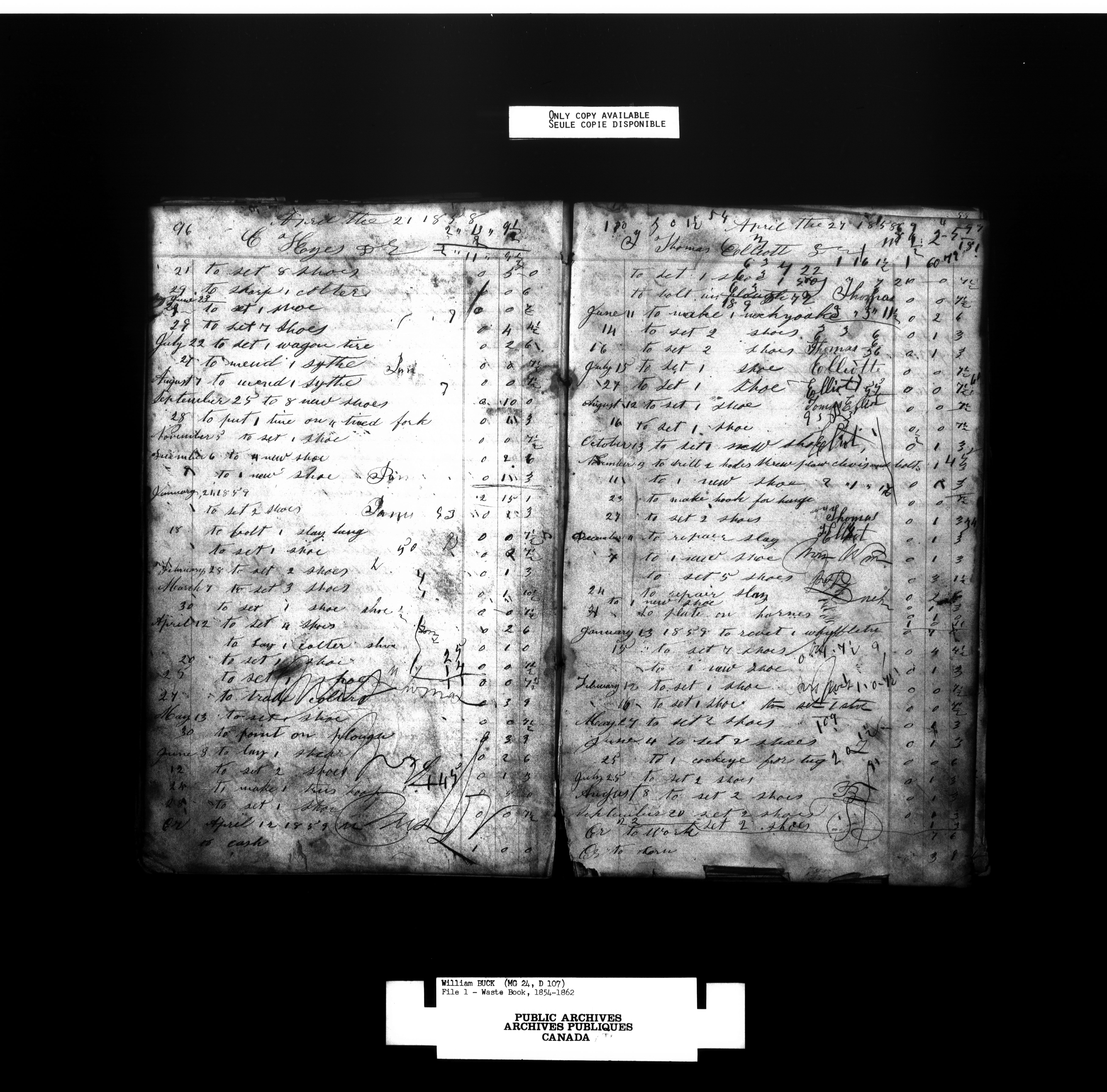 William Buck's waste books containing rough accounts of blacksmith work done, 1854-1862, 1879-1984Index to accounts and personal papers - 1563