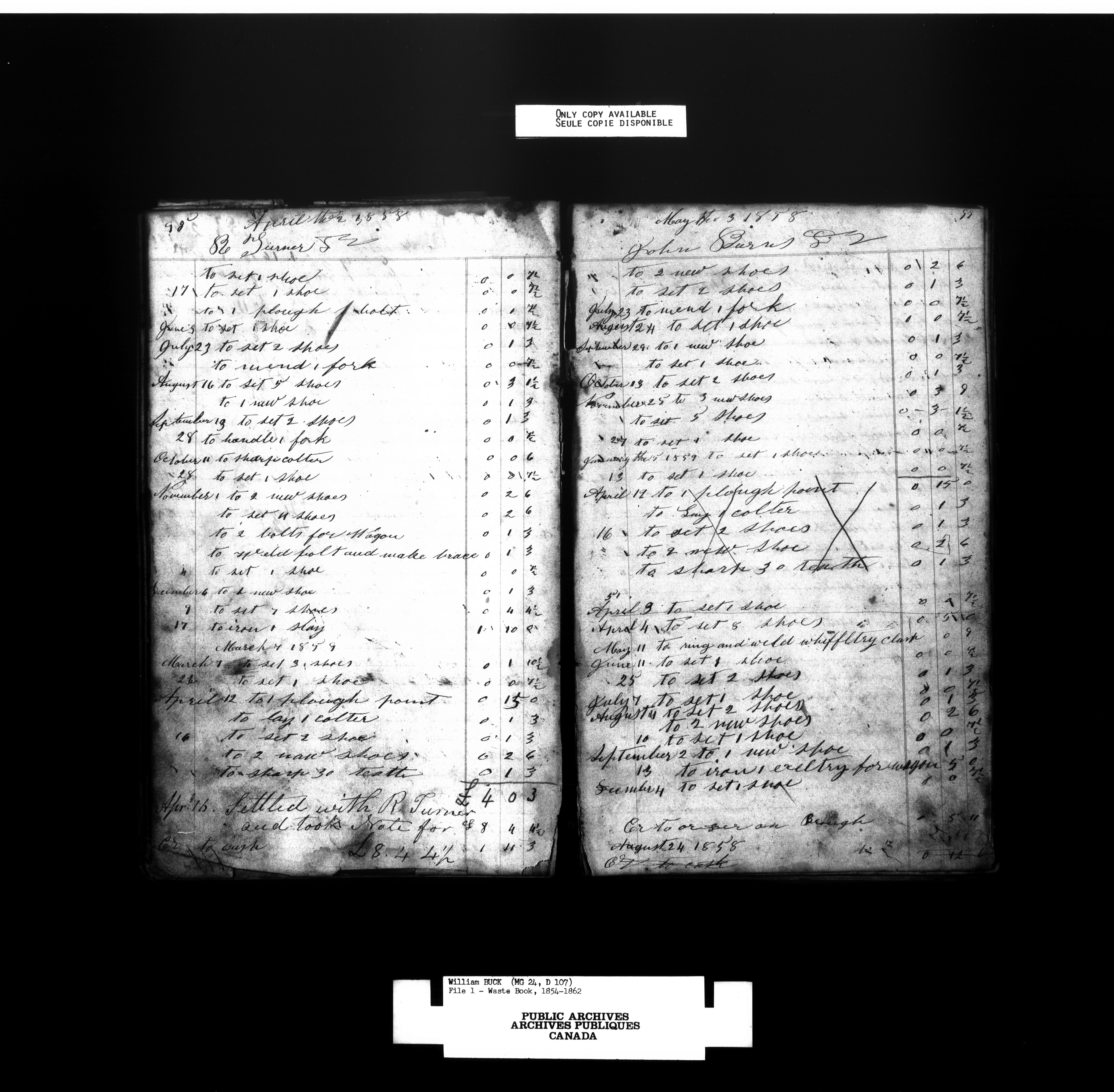 William Buck's waste books containing rough accounts of blacksmith work done, 1854-1862, 1879-1984Index to accounts and personal papers - 1563