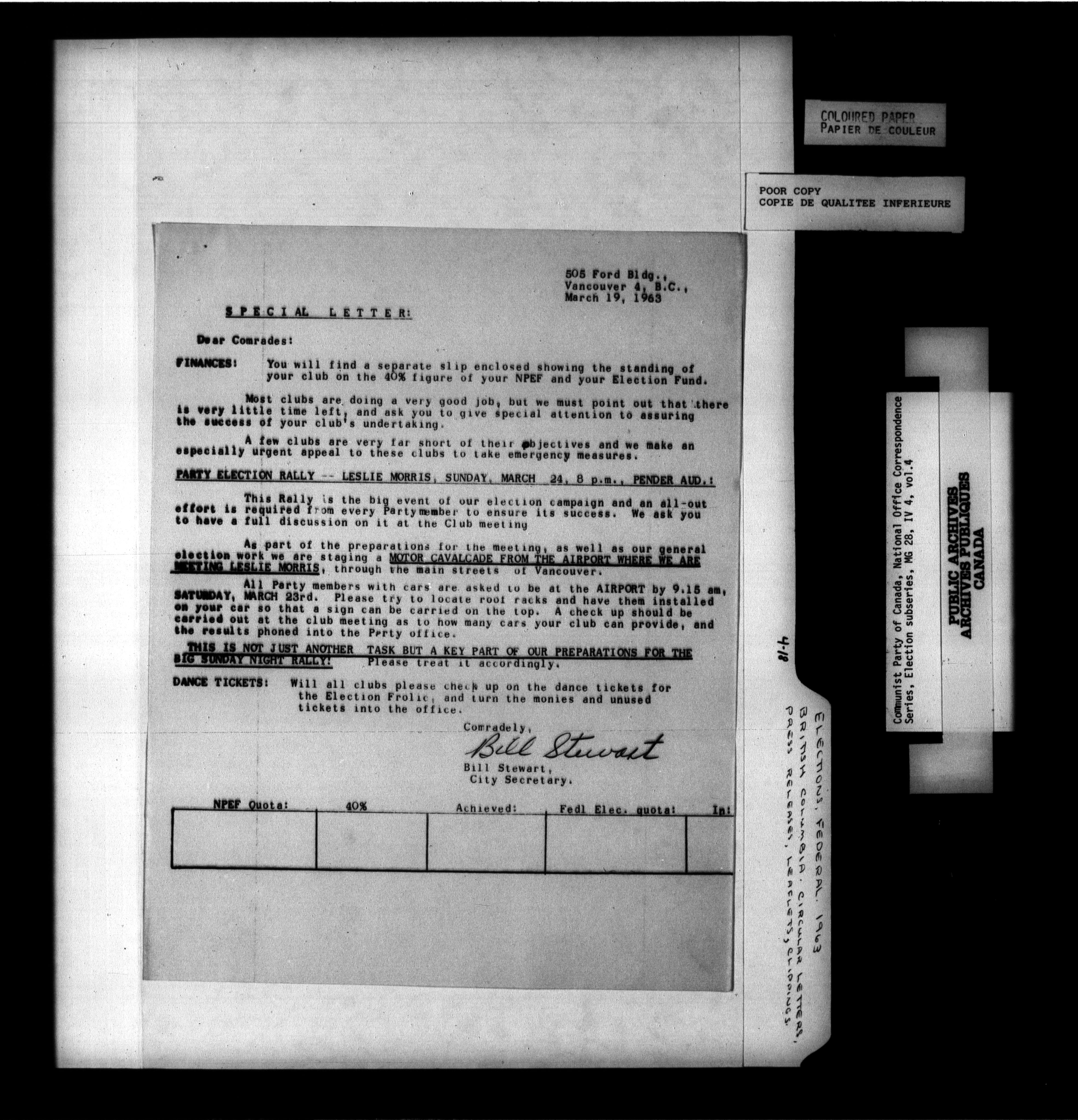 Communist Party of Canada, 1905-1982 : National Office, Elections - 1577
