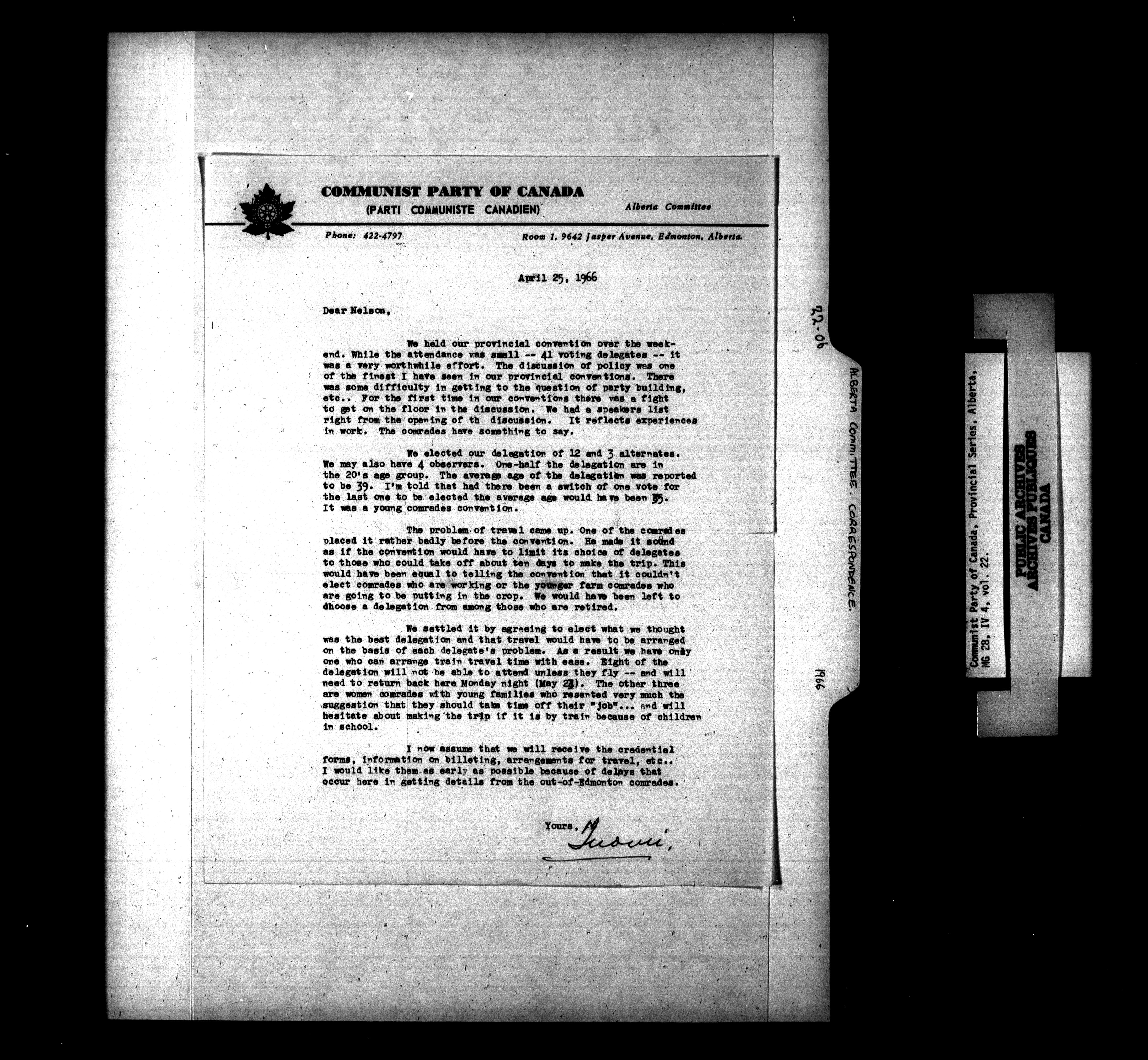 Communist Party of Canada : Provincial series, Alberta - 1592